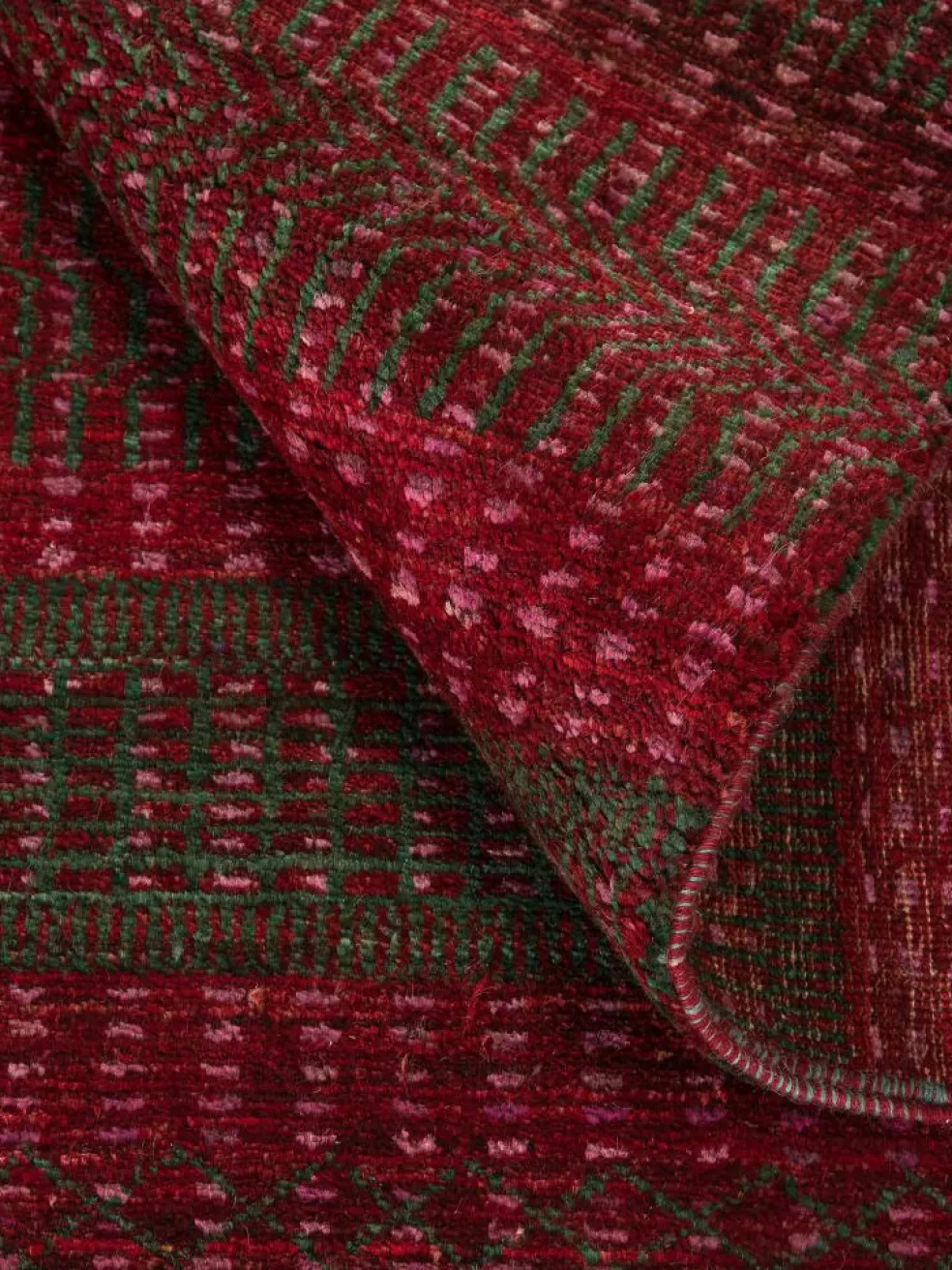 ist eine ungewöhnliche moderne Variation des traditionellen persichen Gabbehs. Er ist kürzer im Flor und feiner geknüpft. Es gibt zahllose Neukreationen in individuellen und einzigartigen Farben und Mustern.| Gesamthöhe: | ca. 10 mm |