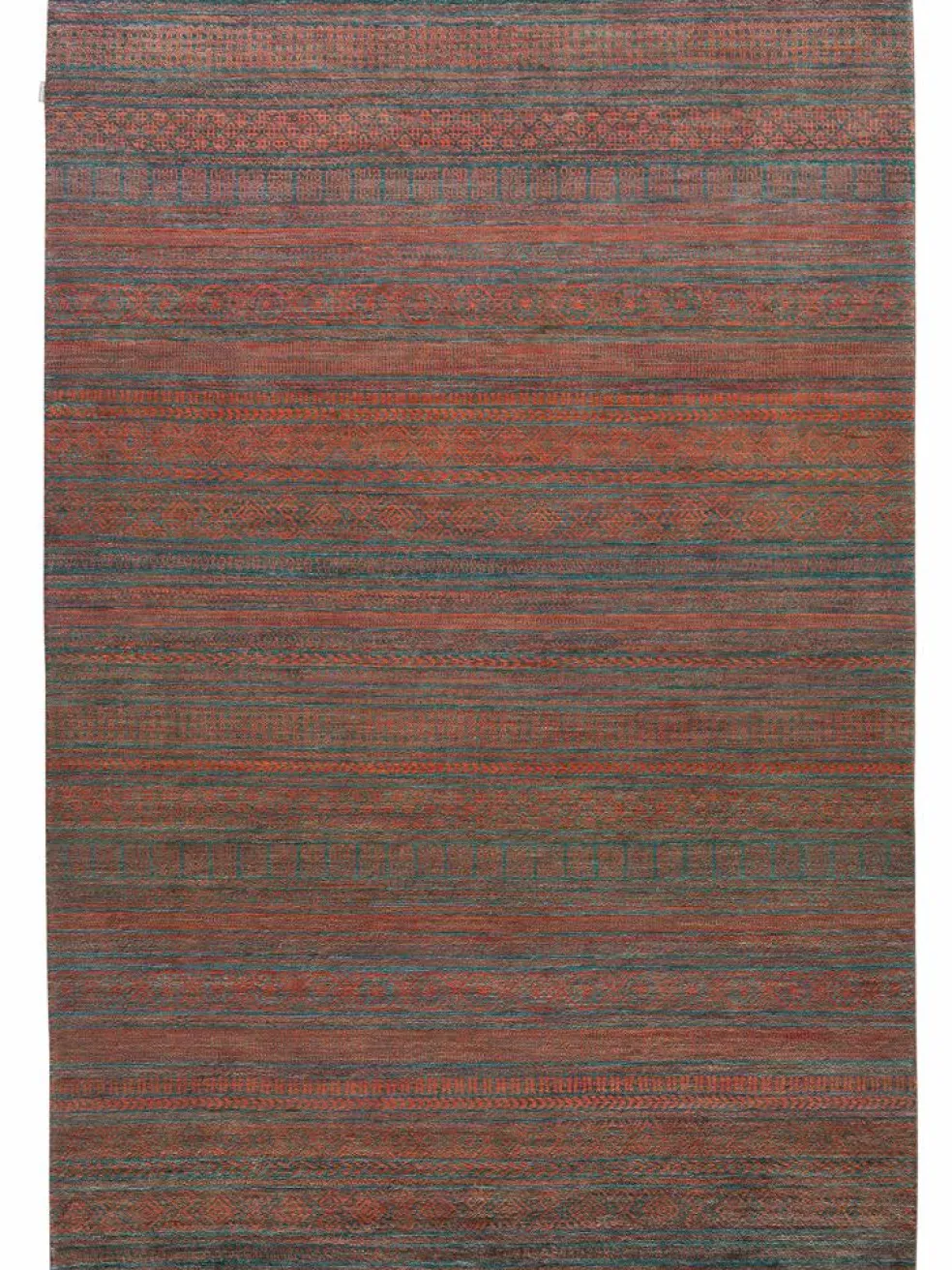 ist eine ungewöhnliche moderne Variation des traditionellen persichen Gabbehs. Er ist kürzer im Flor und feiner geknüpft. Es gibt zahllose Neukreationen in individuellen und einzigartigen Farben und Mustern.| Gesamthöhe: | ca. 10 mm |