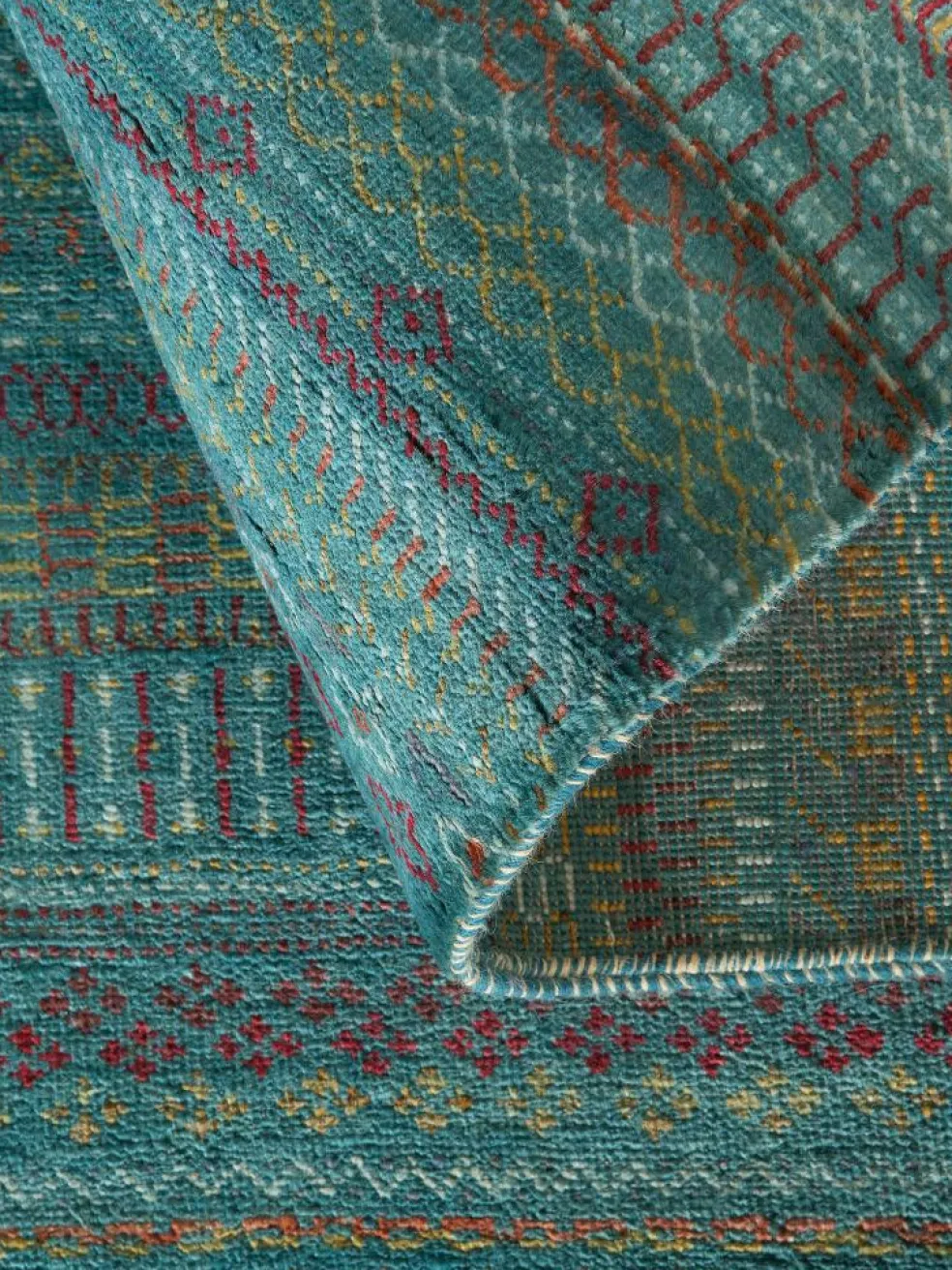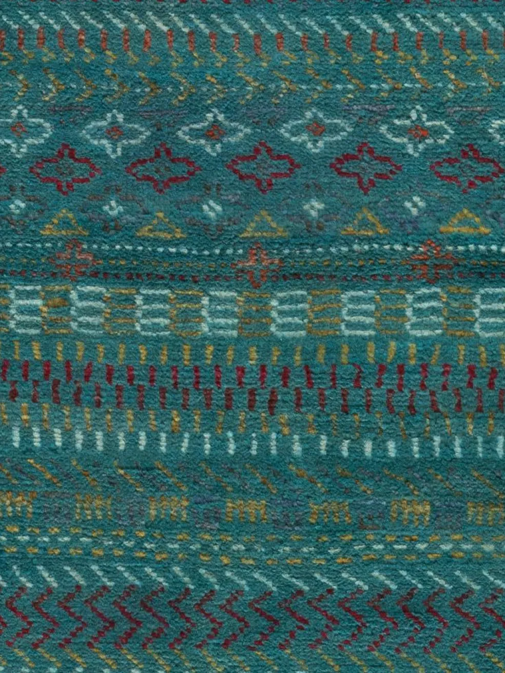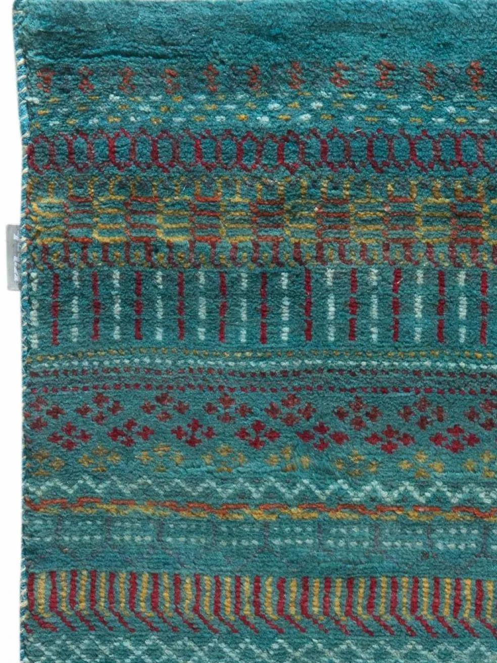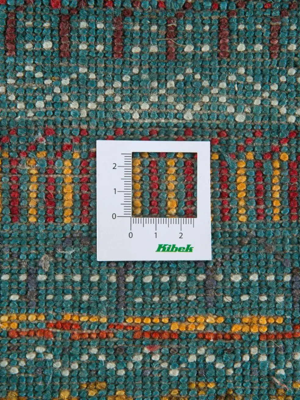 ist eine ungewöhnliche moderne Variation des traditionellen persichen Gabbehs. Er ist kürzer im Flor und feiner geknüpft. Es gibt zahllose Neukreationen in individuellen und einzigartigen Farben und Mustern.| Gesamthöhe: | ca. 10 mm |