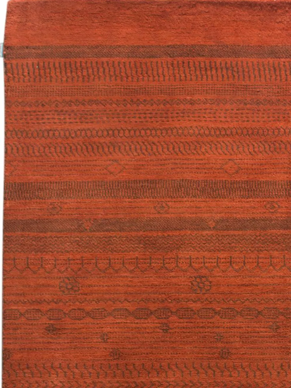 ist eine ungewöhnliche moderne Variation des traditionellen persichen Gabbehs. Er ist kürzer im Flor und feiner geknüpft. Es gibt zahllose Neukreationen in individuellen und einzigartigen Farben und Mustern.| Gesamthöhe: | ca. 10 mm |