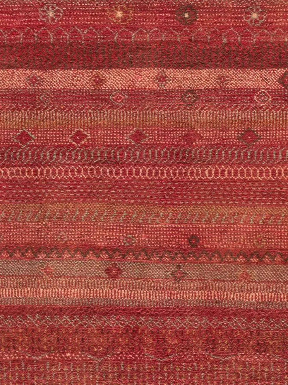 ist eine ungewöhnliche moderne Variation des traditionellen persichen Gabbehs. Er ist kürzer im Flor und feiner geknüpft. Es gibt zahllose Neukreationen in individuellen und einzigartigen Farben und Mustern.| Gesamthöhe: | ca. 7 mm |