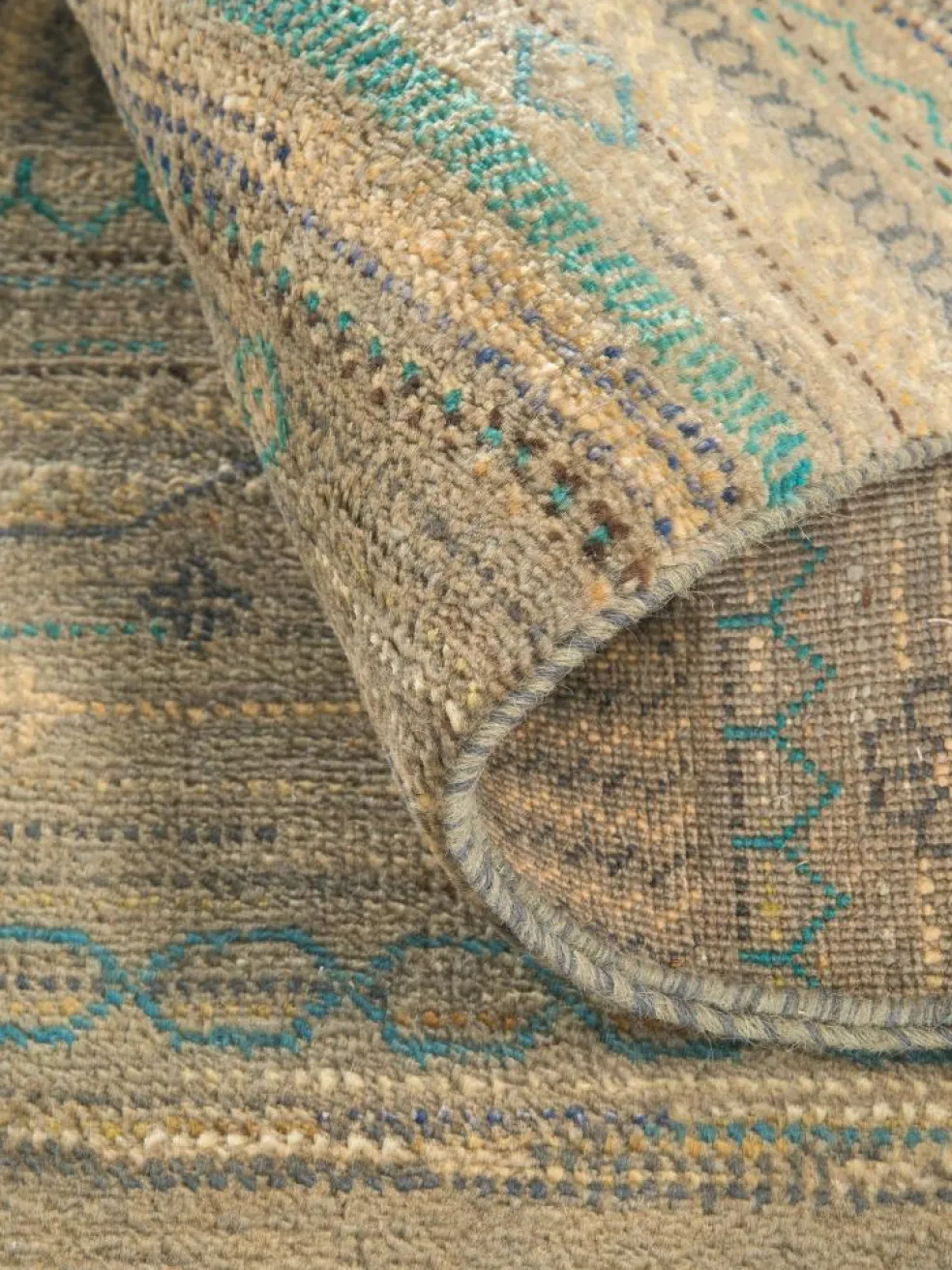 ist eine ungewöhnliche moderne Variation des traditionellen persichen Gabbehs. Er ist kürzer im Flor und feiner geknüpft. Es gibt zahllose Neukreationen in individuellen und einzigartigen Farben und Mustern.| Gesamthöhe: | ca. 7 mm |