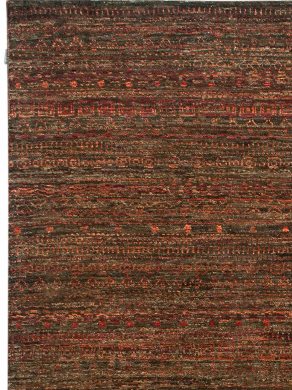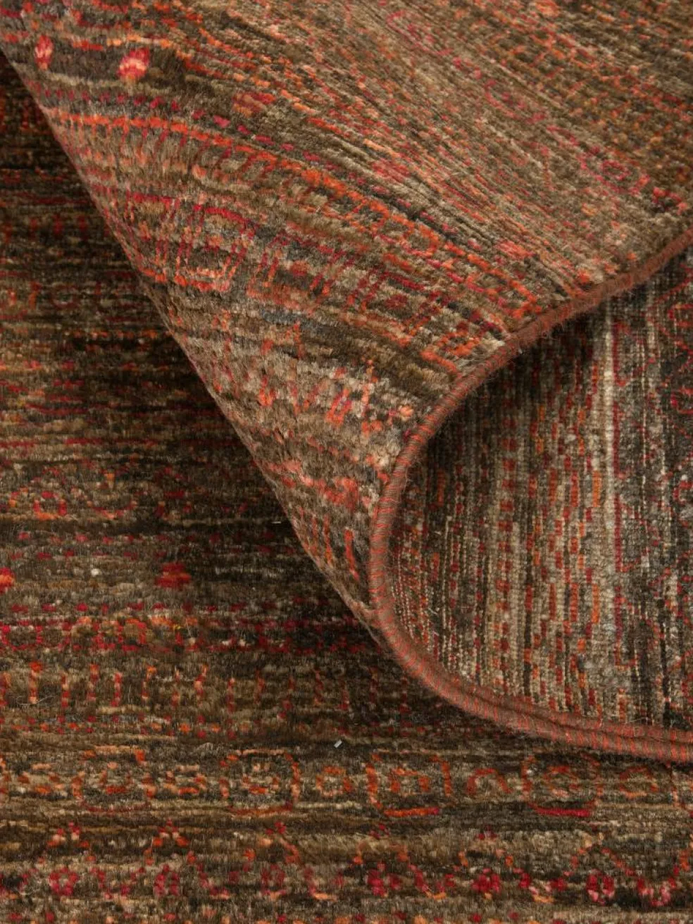 ist eine ungewöhnliche moderne Variation des traditionellen persichen Gabbehs. Er ist kürzer im Flor und feiner geknüpft. Es gibt zahllose Neukreationen in individuellen und einzigartigen Farben und Mustern.| Gesamthöhe: | ca. 10 mm |