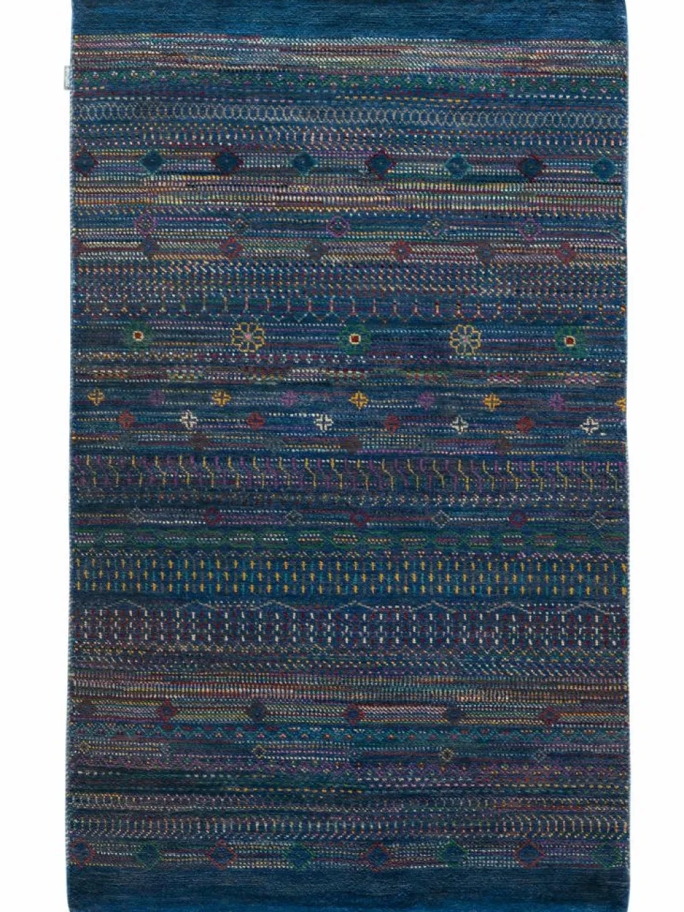 ist eine ungewöhnliche moderne Variation des traditionellen persichen Gabbehs. Er ist kürzer im Flor und feiner geknüpft. Es gibt zahllose Neukreationen in individuellen und einzigartigen Farben und Mustern.| Gesamthöhe: | ca. 10 mm |