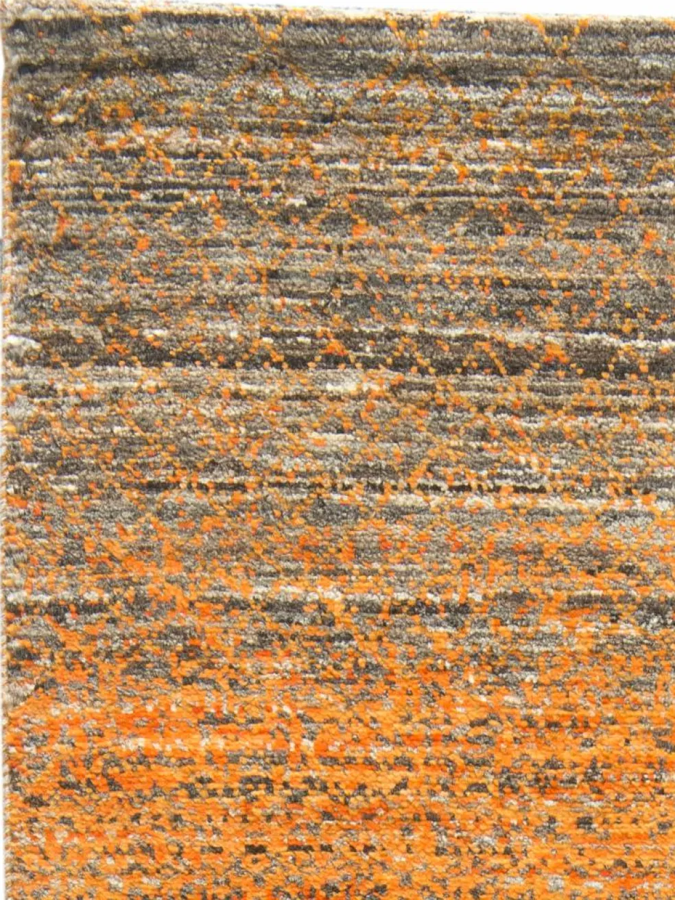 ist eine ungewöhnliche moderne Variation des traditionellen persichen Gabbehs. Er ist kürzer im Flor und feiner geknüpft. Es gibt zahllose Neukreationen in individuellen und einzigartigen Farben und Mustern.| Gesamthöhe: | ca. 10 mm |