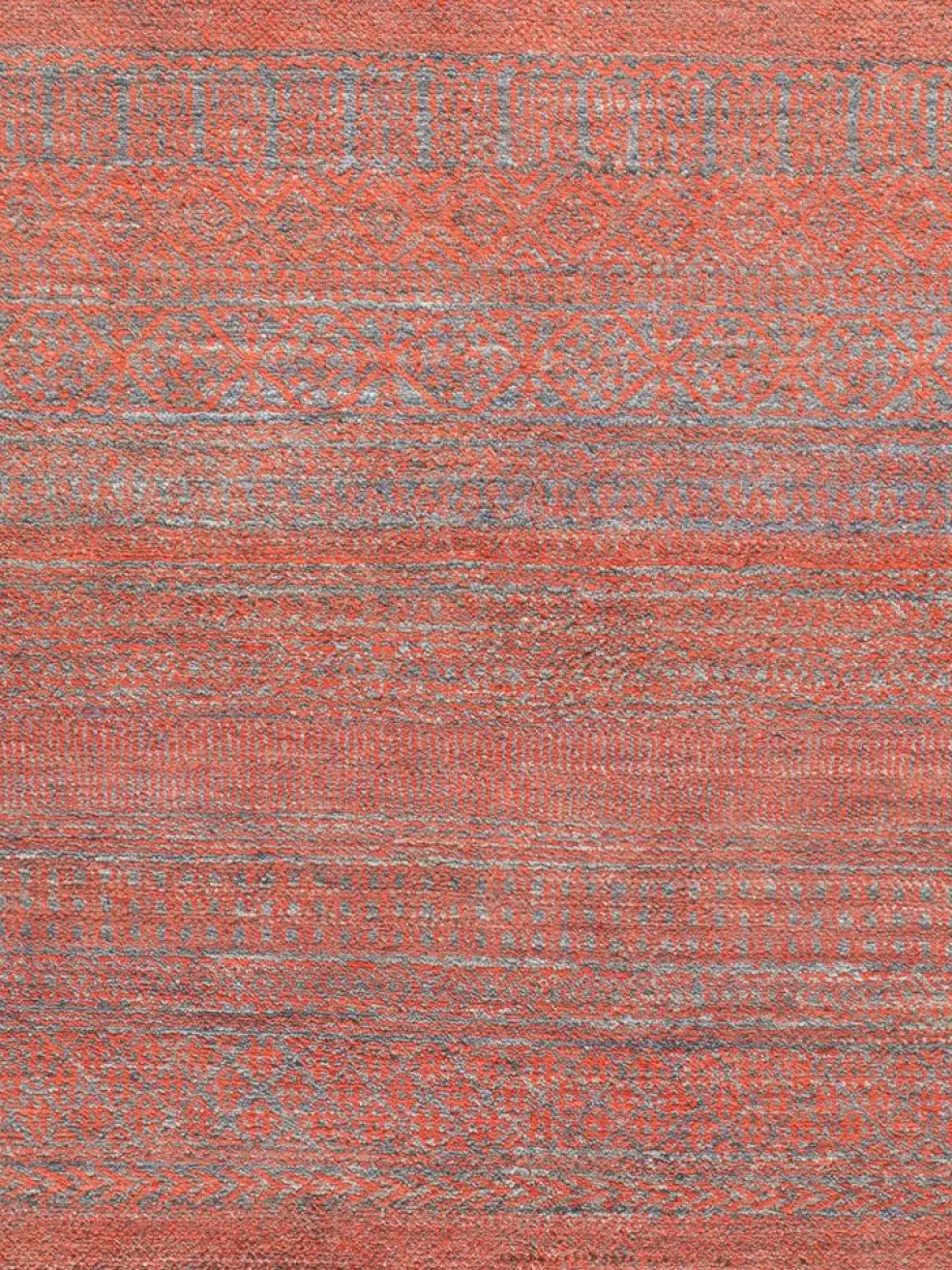 ist eine ungewöhnliche moderne Variation des traditionellen persichen Gabbehs. Er ist kürzer im Flor und feiner geknüpft. Es gibt zahllose Neukreationen in individuellen und einzigartigen Farben und Mustern.| Gesamthöhe: | ca. 10 mm |