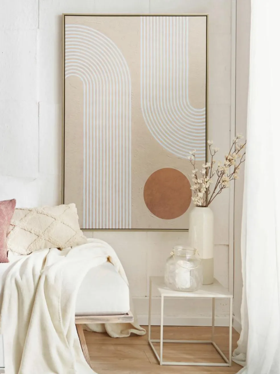 Modernes, grafisches Giclée mit MDF-Rahmen. Fertig gerahmt. Teils handgemalt. Ca. 4,3 cm stark. Inklusive stabiler Aufhängung.