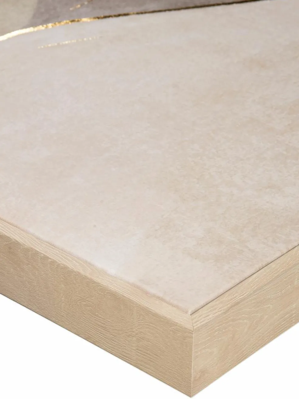 Dieser hochwertige Giclée-Druck beeindruckt mit kunstvollen Weiß-Beige-Tönen und edlen Akzenten aus Goldfolie. Der naturfarbene Rahmen aus Polyschaumkunststoff rundet das elegante Design harmonisch ab und macht das Wandbild zu einem stilvollen Blickfang in jedem Raum.