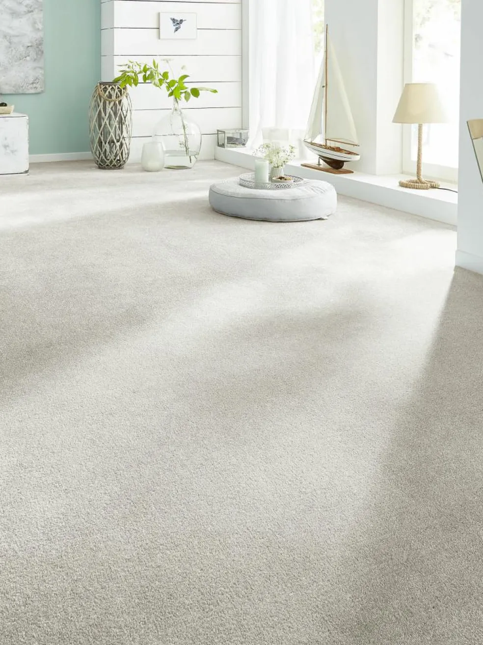 Mal ehrlich: wer braucht schon Möbel, wer braucht Stühle, Tische odergar Betten, wenn ein Teppichboden wie EMOTION die Wohnung in eine derarteinladende Landschaft verwandelt. Der leicht glänzende Flor ausKräuselvelours lädt dazu ein, die Schuhe auszuziehen und ihn barfuß zuerleben – doch keine Sorge: das Material ist so strapazierfähig undpflegeleicht, das kann auch Schuhe gut vertragen. Und sogar Möbel, wennman denn unbedingt darauf besteht … Flormaterial: 100 % Polyamid.