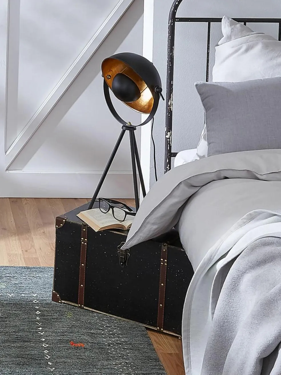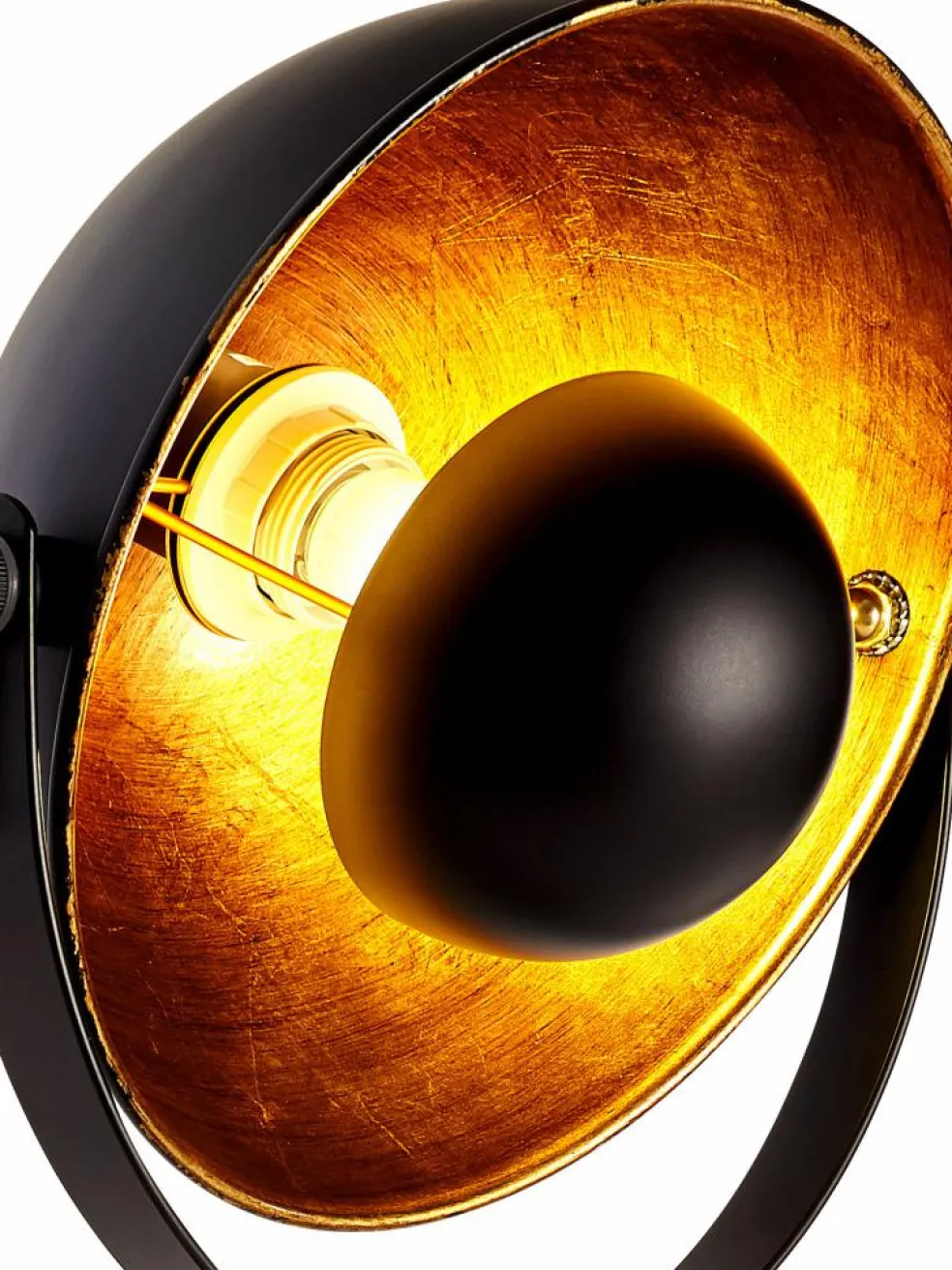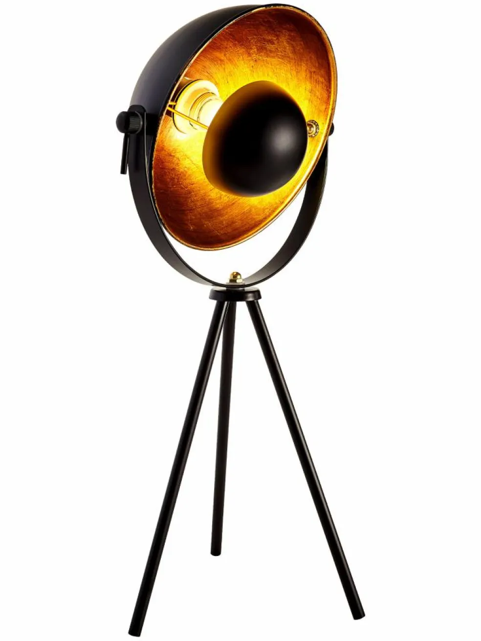 Dreibeinige Tischleuchte aus Metall. Excl. Leuchtmittel, E27 max. 40W. EEK: A++-E. In Schwarz/Gold oder Weiß/Silber. Größe ca. 28 x 63 cm.