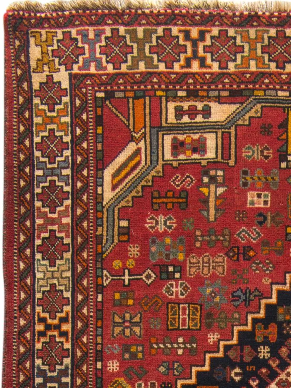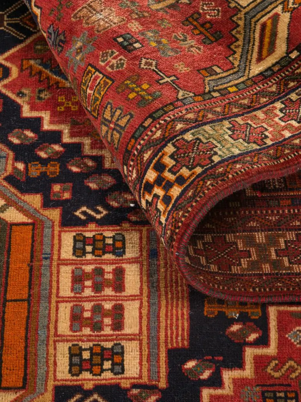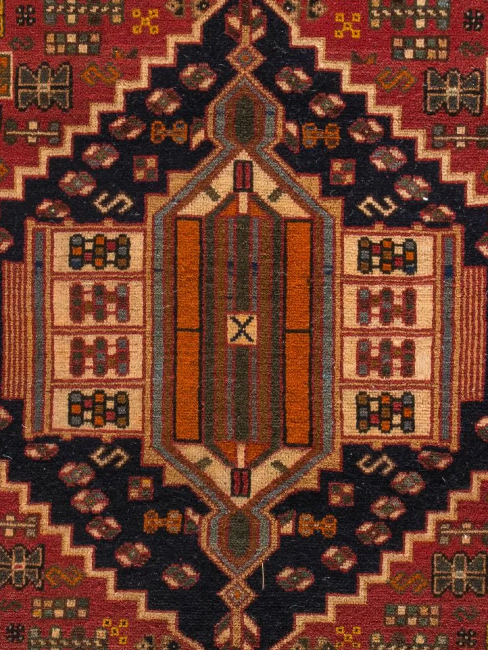 -Teppiche sind die Könige unter den Nomadenteppichen. Knüpfvorlagen gibt es bei den Ghashgai nicht. Die Knüpferinnen haben ein sehr gutes Gedächtnis. Sie brauchen ein interessantes Motiv nur einmal zu sehen oder erzählt zu bekommen. Alle Teppiche werden aus dem Gedächtnis geknüpft und sind daher nie gleich. Die Ornamente werden immer anders angeordnet oder die Farben unterscheiden sich. DasGrundgewebe