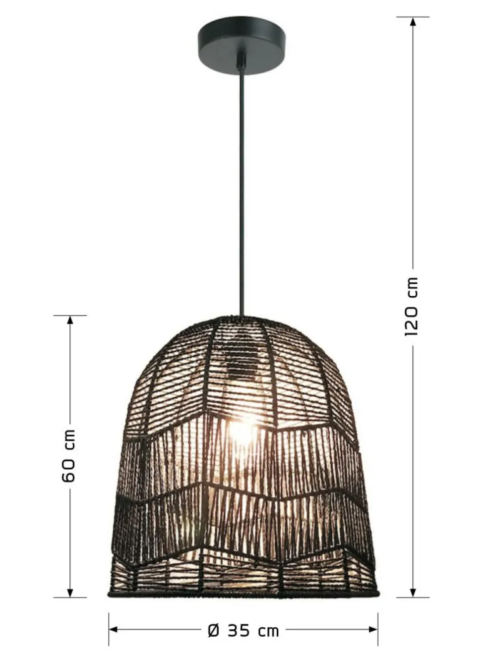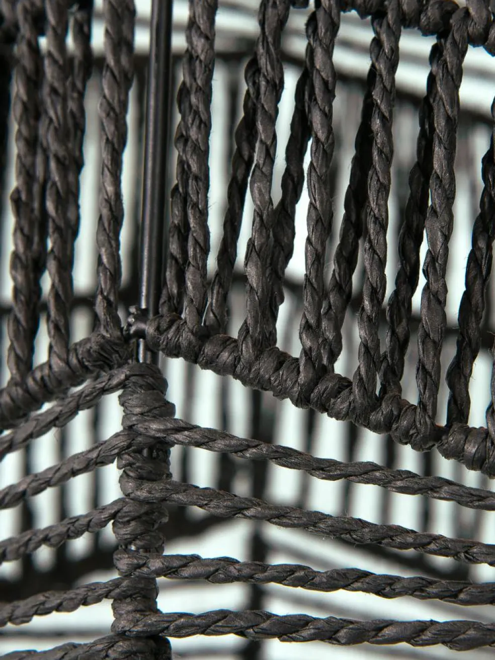 Papierseil wird von Hand um das Metallgehäuse gewickelt. HADANO hat einen Durchmesser von ca. 35 cm und die Lampenschirm-Höhe beträgt ca. 60 cm. Exkl. Leuchtmittel E 27, 40 W.