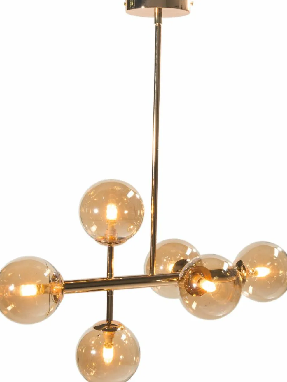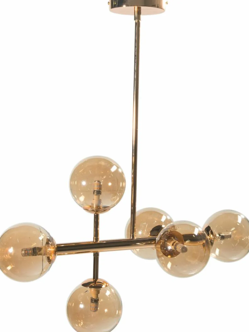 Diese beeindruckende Hängeleuchte, gefertigt aus edlem Messing und warmem Amberglas, verleiht jeden Raum in eine einladende Atmosphäre. Besonders für minimalistische Einrichtungsstile stellt diese Pendelleuchte eine luxuriöse Bereicherung dar und zieht garantiert alle Blicke auf sich. Die Hängelampe ist höhenverstellbar.