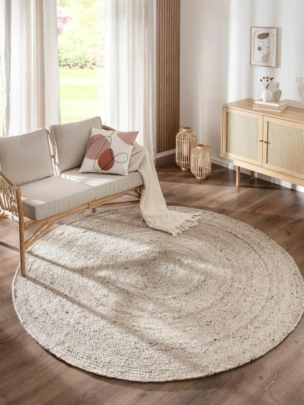 | Material: | 50 % Schurwolle , 50 % Jute |