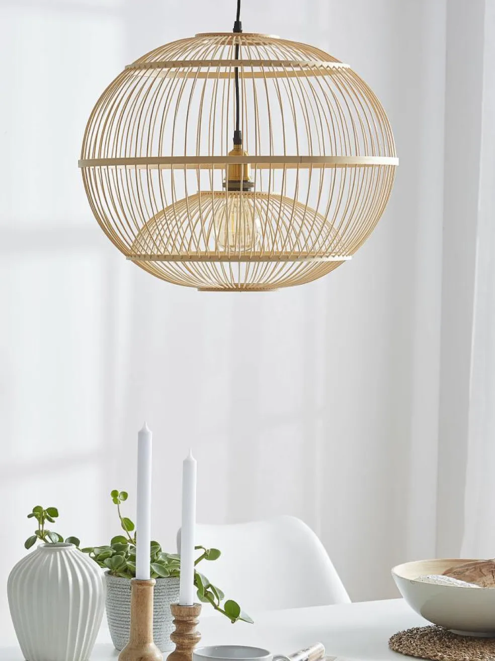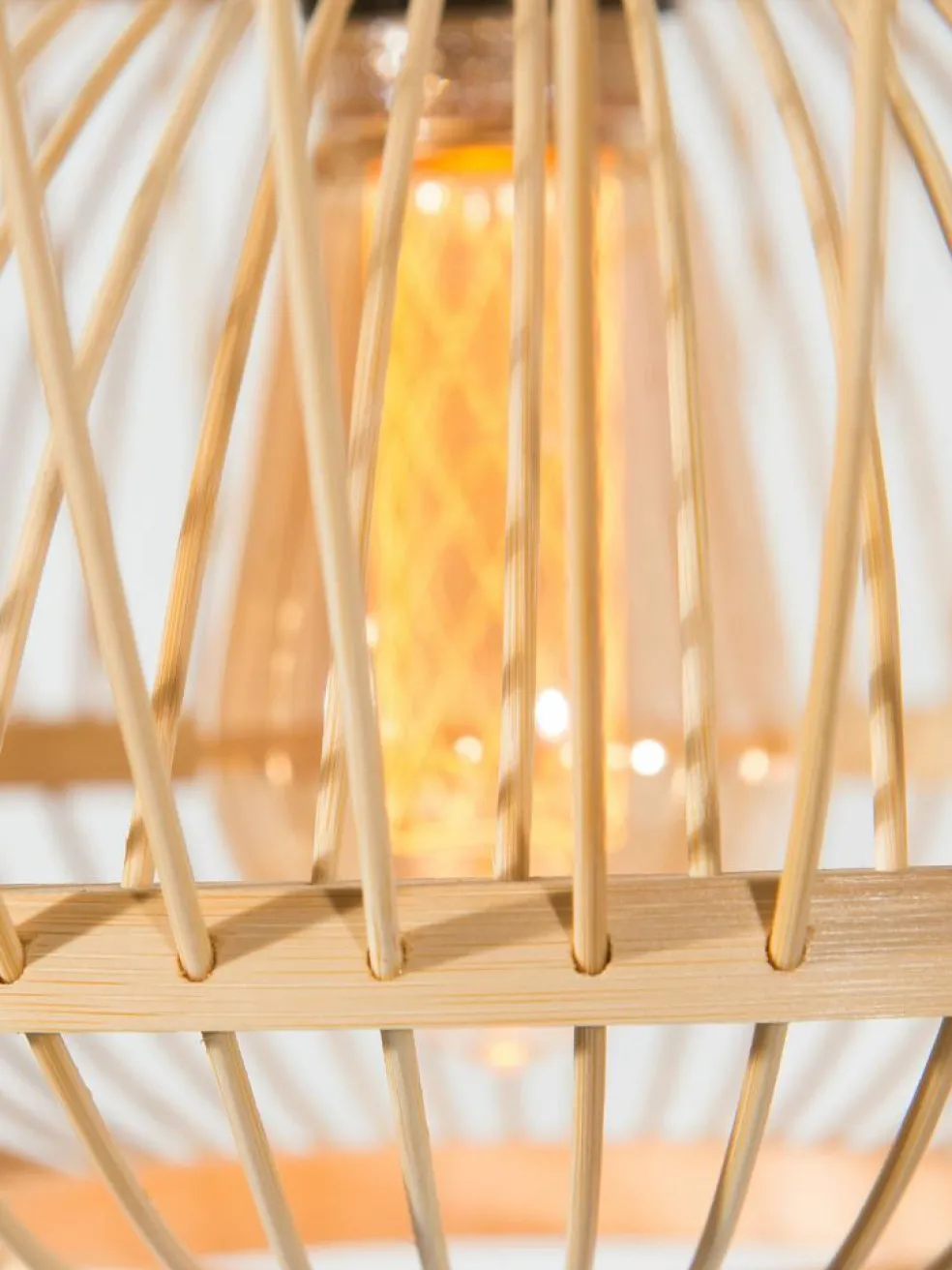 Für IWATO wird Bambus, eine schnell wachsende Pflanze verwendet. Die Lampe ist von Hand gefertigt.Ca. 45 x 50 cm. Exkl. Leuchtmittel E 27, 40 W.