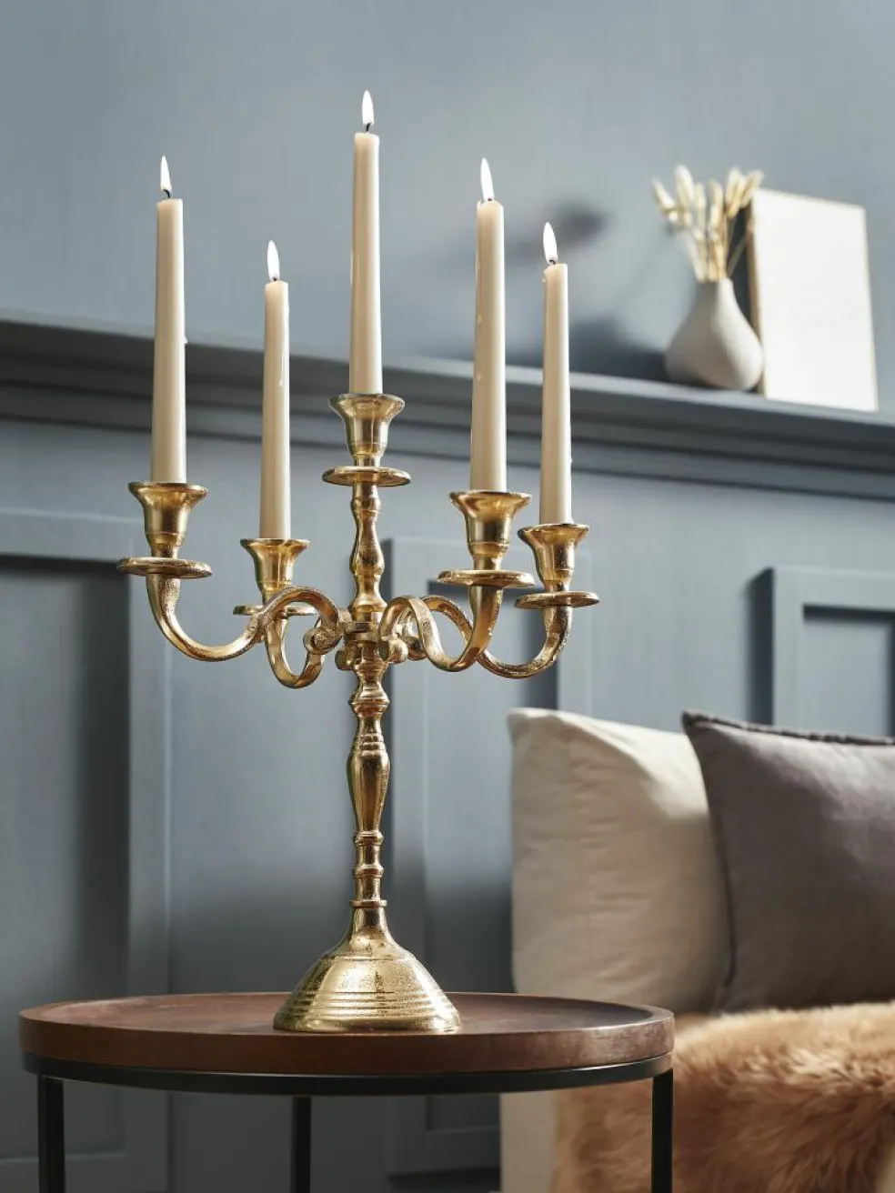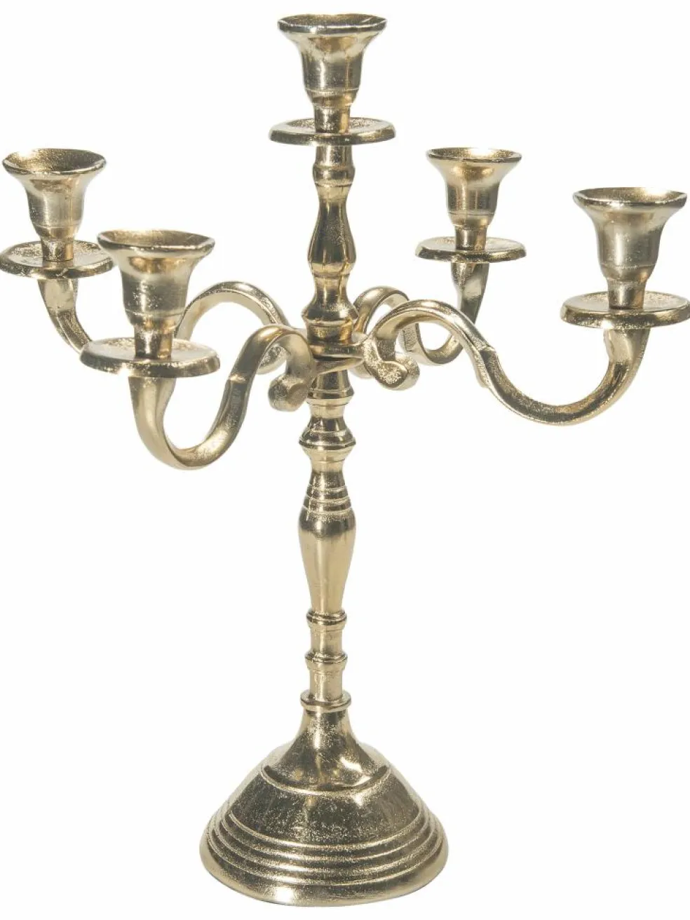 Dieser fünf-armige Kerzenleuchter aus massivem Aluminium überzeugt mit einem besonderen, edlen Design. Mit einer Höhe von ca. 40 cm setzt er Statements. Dabei ist er individuell einsetzbar und passt beispielsweise auf eine festlich gedeckte Dinner-Tafel oder ist als romantische Beleuchtung auf der Terrasse geeignet.