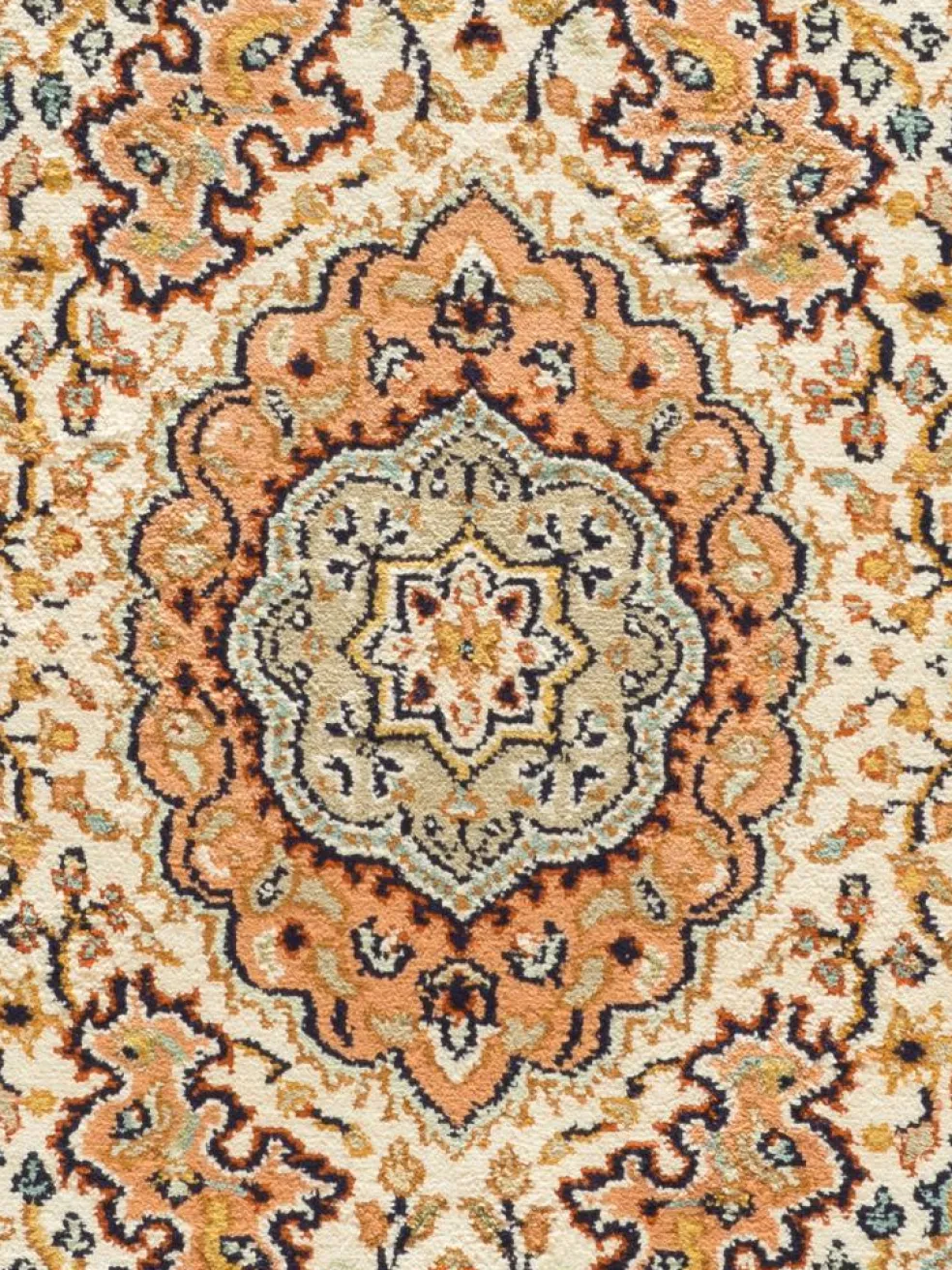 -Teppiche sind eher zurückhaltend, die Muster nach wie vor sehr stark persisch beeinflusst. Florale Motive und das persischeFeldermuster