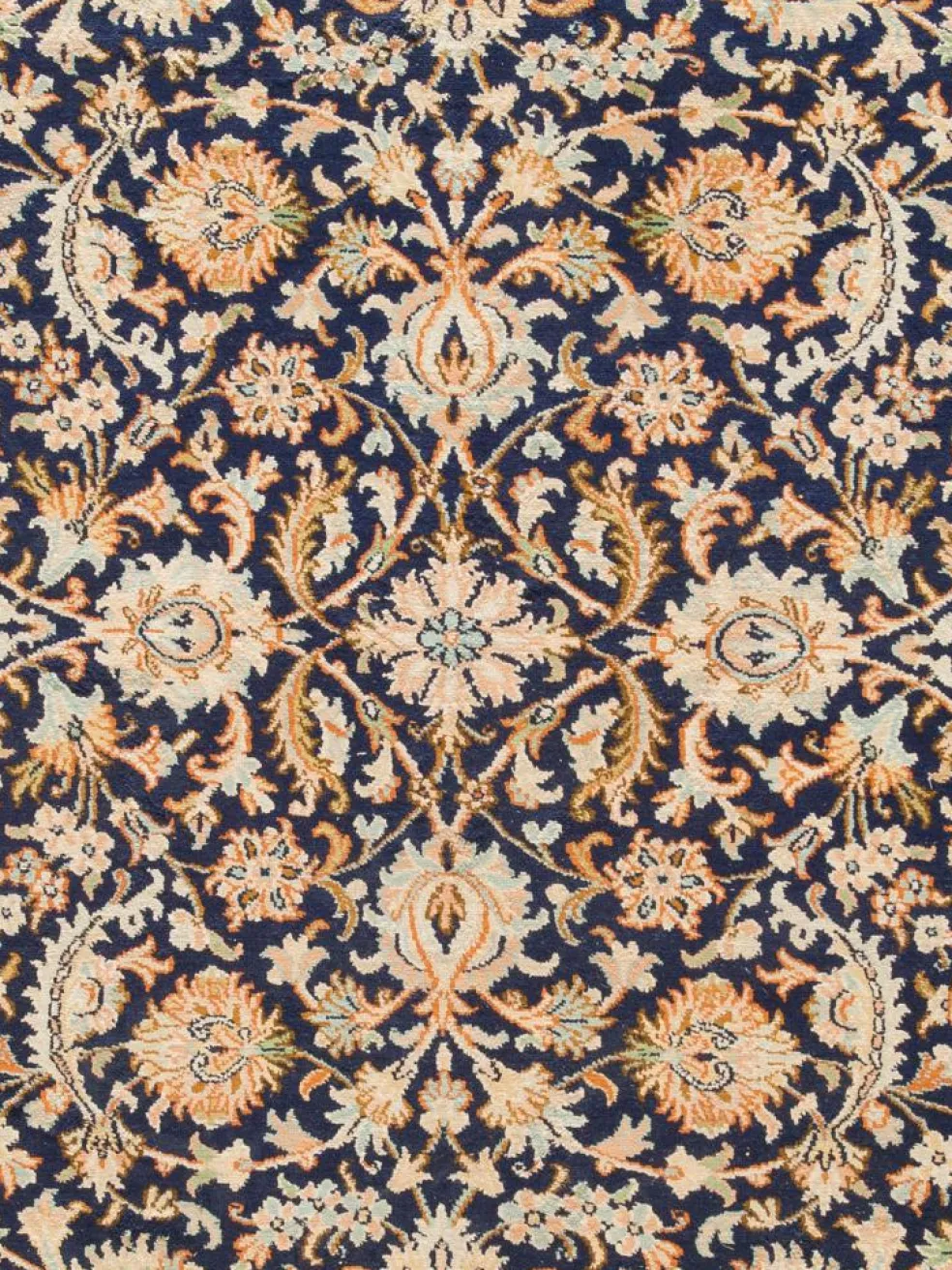-Teppiche sind eher zurückhaltend, die Muster nach wie vor sehr stark persisch beeinflusst. Florale Motive und das persischeFeldermuster