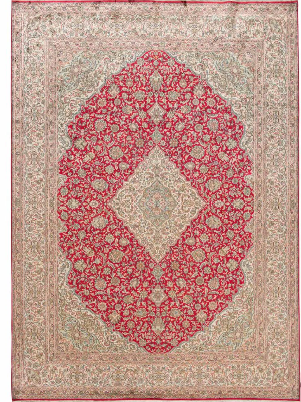 -Teppiche sind eher zurückhaltend, die Muster nach wie vor sehr stark persisch beeinflusst. Florale Motive und das persischeFeldermuster