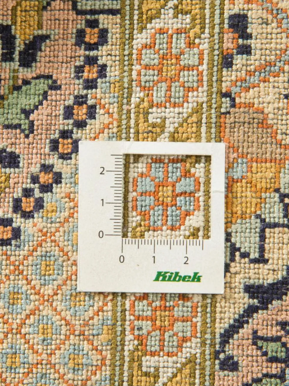 -Teppiche sind eher zurückhaltend, die Muster nach wie vor sehr stark persisch beeinflusst. Florale Motive und das persischeFeldermuster