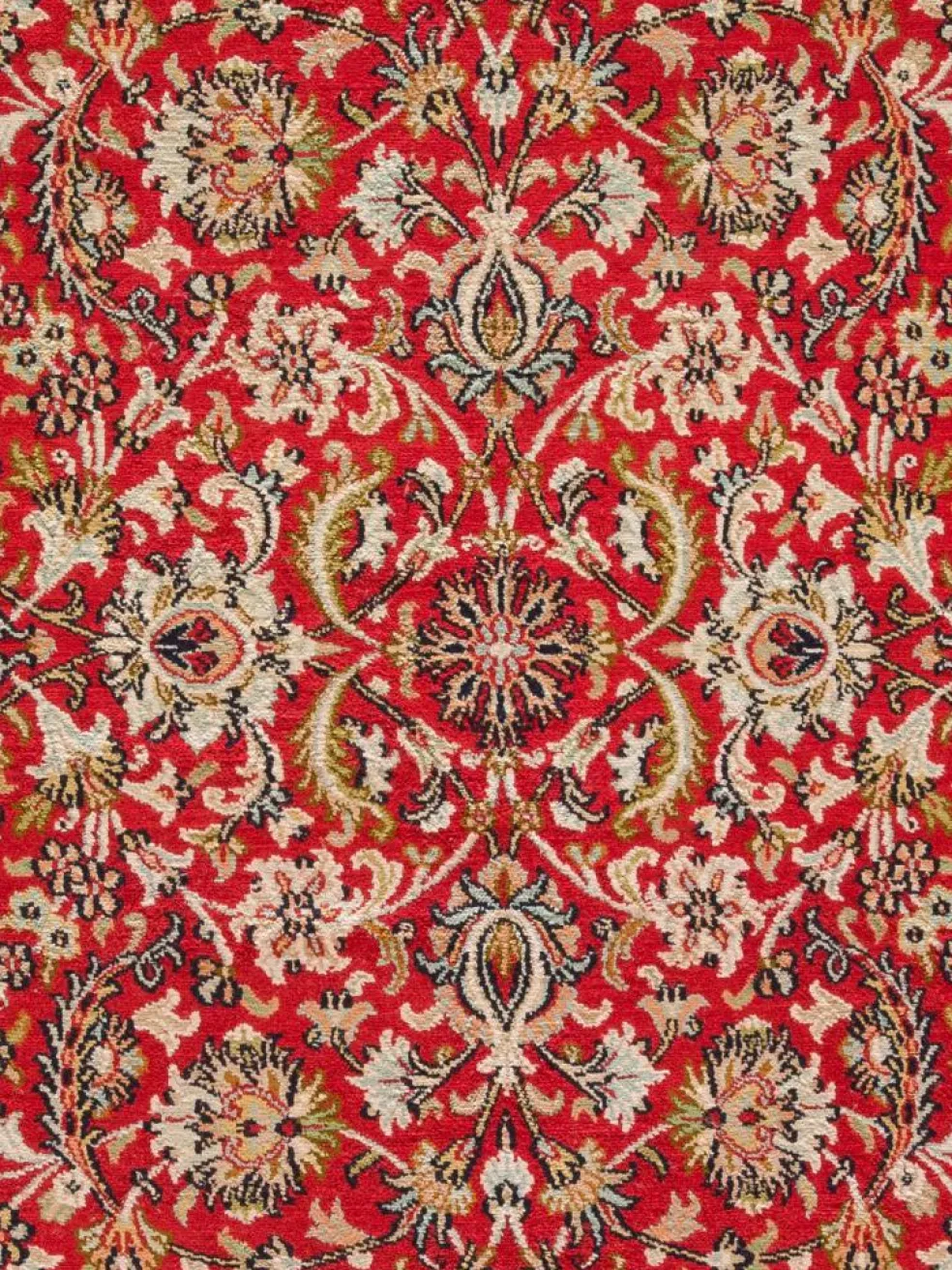 -Teppiche sind eher zurückhaltend, die Muster nach wie vor sehr stark persisch beeinflusst. Florale Motive und das persischeFeldermuster