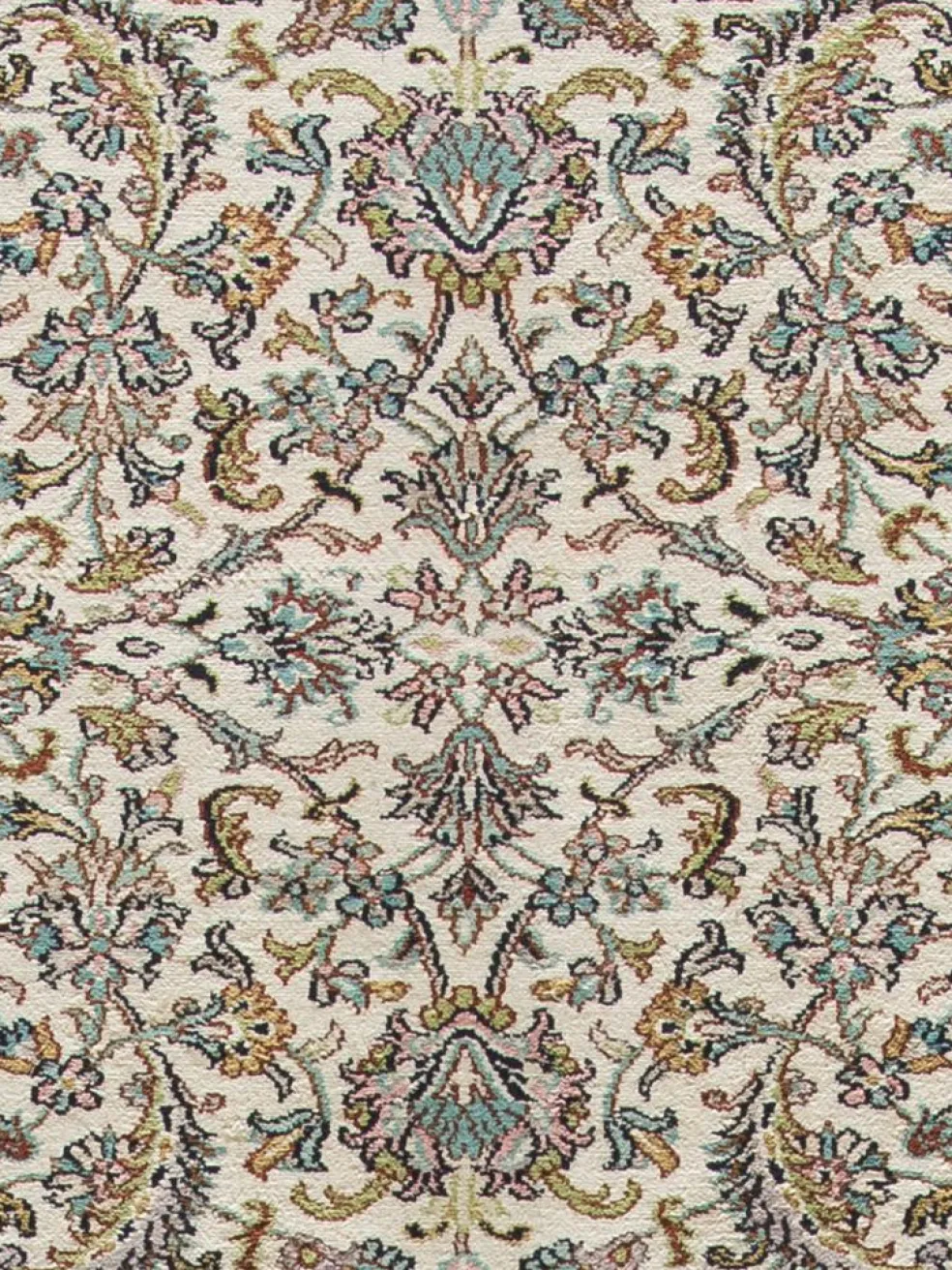 -Teppiche sind eher zurückhaltend, die Muster nach wie vor sehr stark persisch beeinflusst. Florale Motive und das persischeFeldermuster