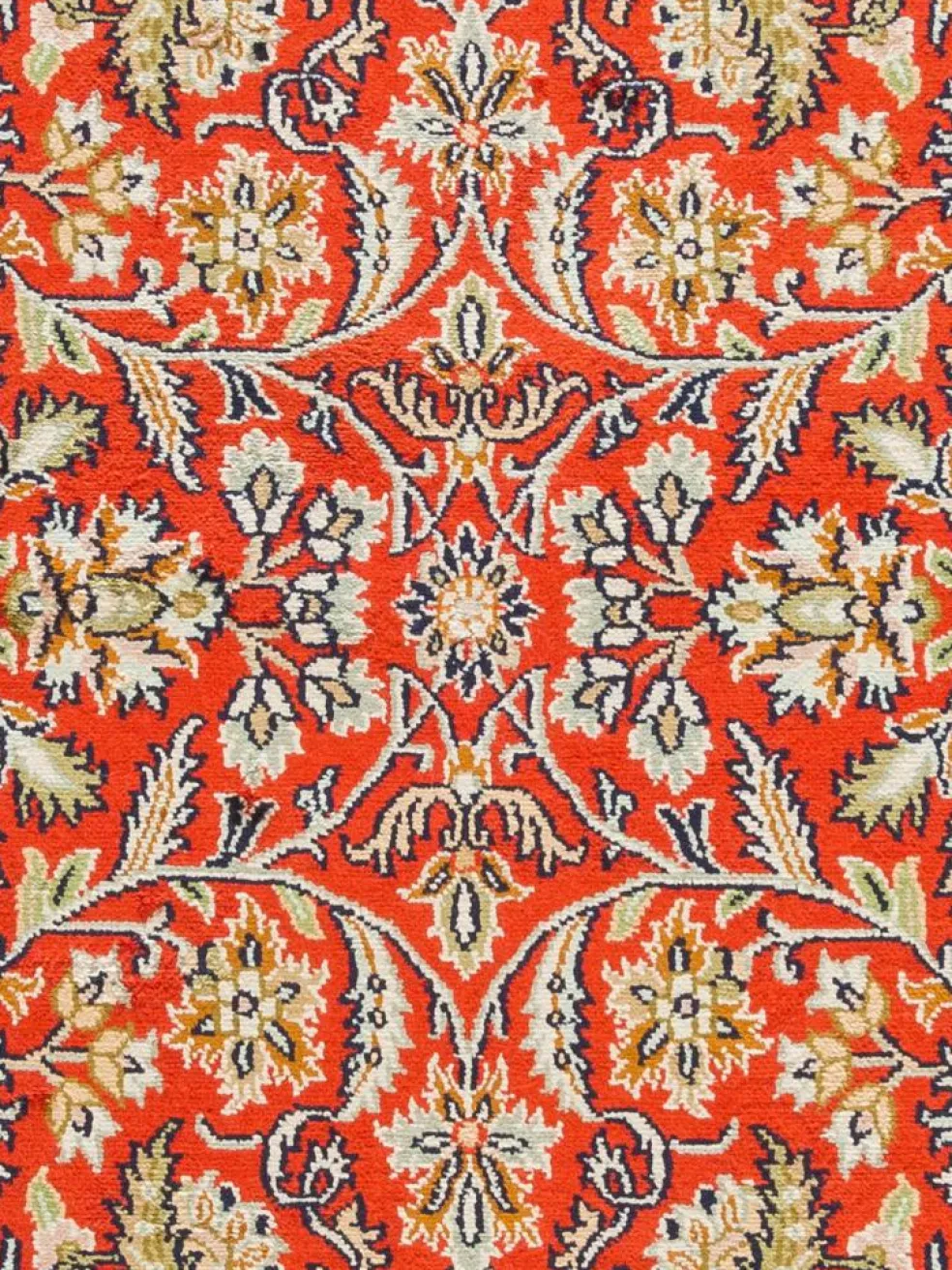 -Teppiche sind eher zurückhaltend, die Muster nach wie vor sehr stark persisch beeinflusst. Florale Motive und das persischeFeldermuster