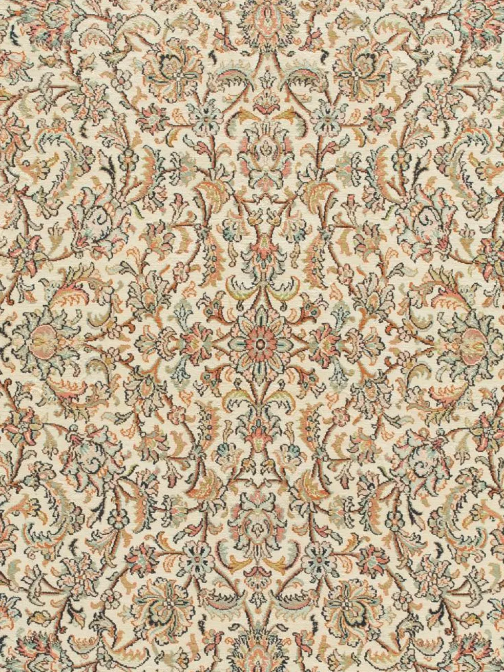 -Teppiche sind eher zurückhaltend, die Muster nach wie vor sehr stark persisch beeinflusst. Florale Motive und das persischeFeldermuster