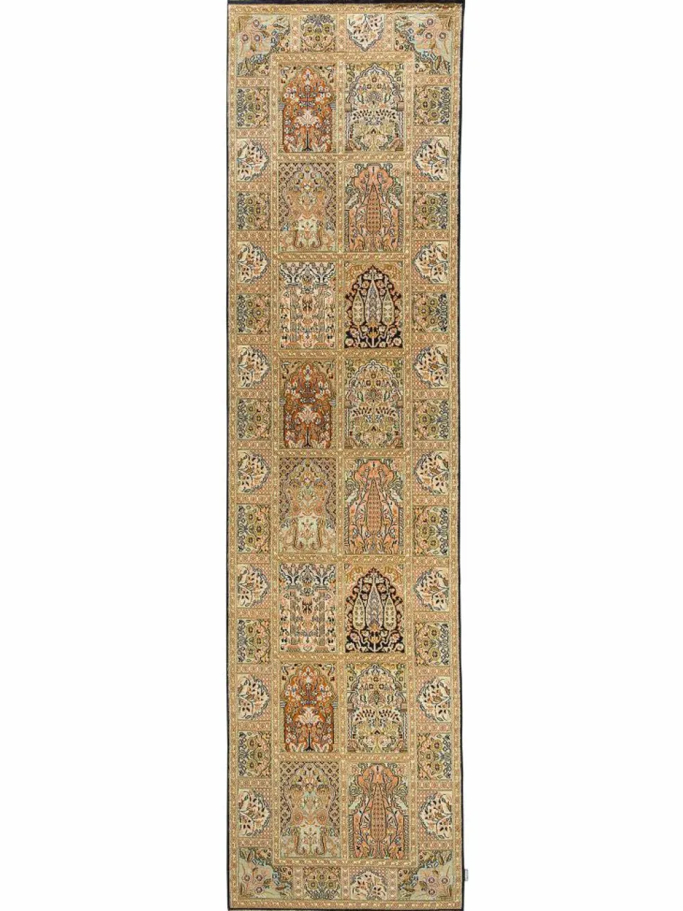 -Teppiche sind eher zurückhaltend, die Muster nach wie vor sehr stark persisch beeinflusst. Florale Motive und das persischeFeldermuster