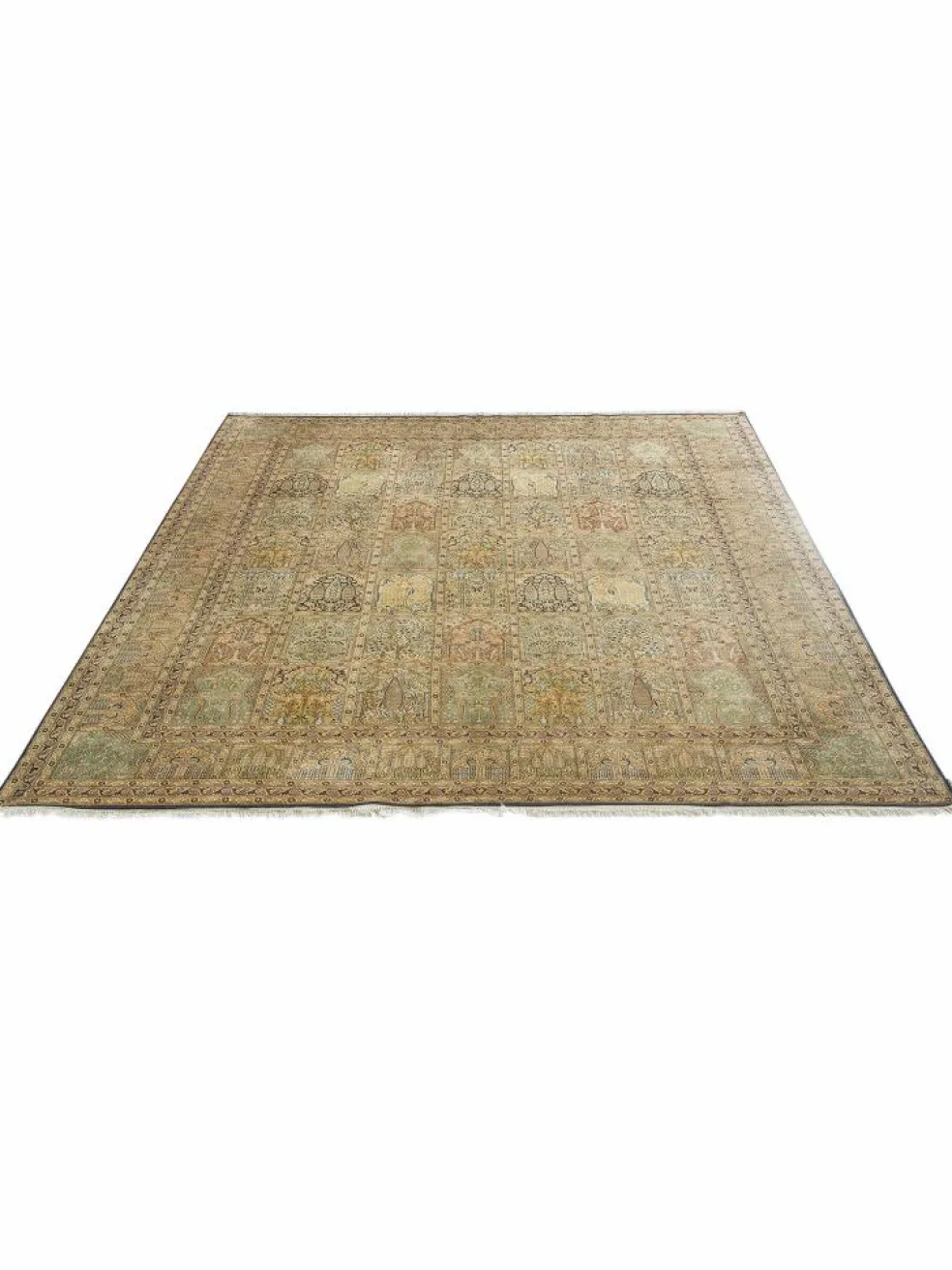 -Teppiche sind eher zurückhaltend, die Muster nach wie vor sehr stark persisch beeinflusst. Florale Motive und das persischeFeldermuster