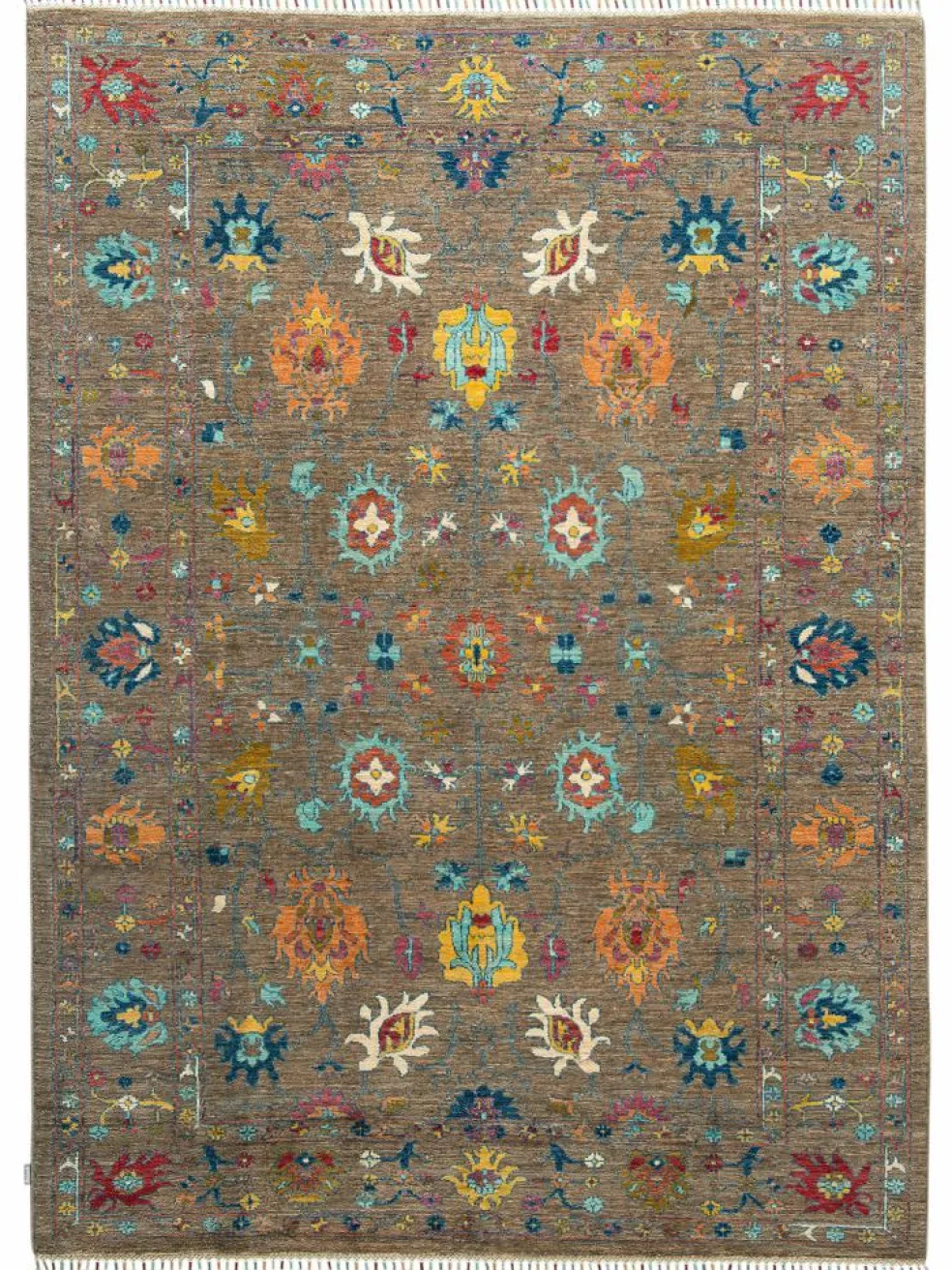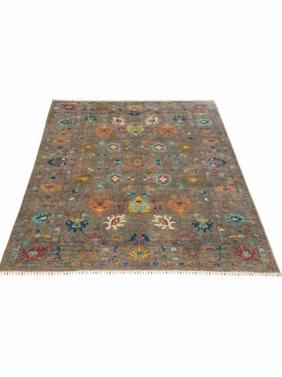 , einem klassischen Blütenmuster. Das Wort „Phool“ kommt aus der Pakistanischen Sprache Urdu und bedeutet „Blume“. Durch den flachen und festen Flor ist der Teppich unempfindlich gegenüber den Belastungen des Alltags. – Der Teppich wurde ausGhazni