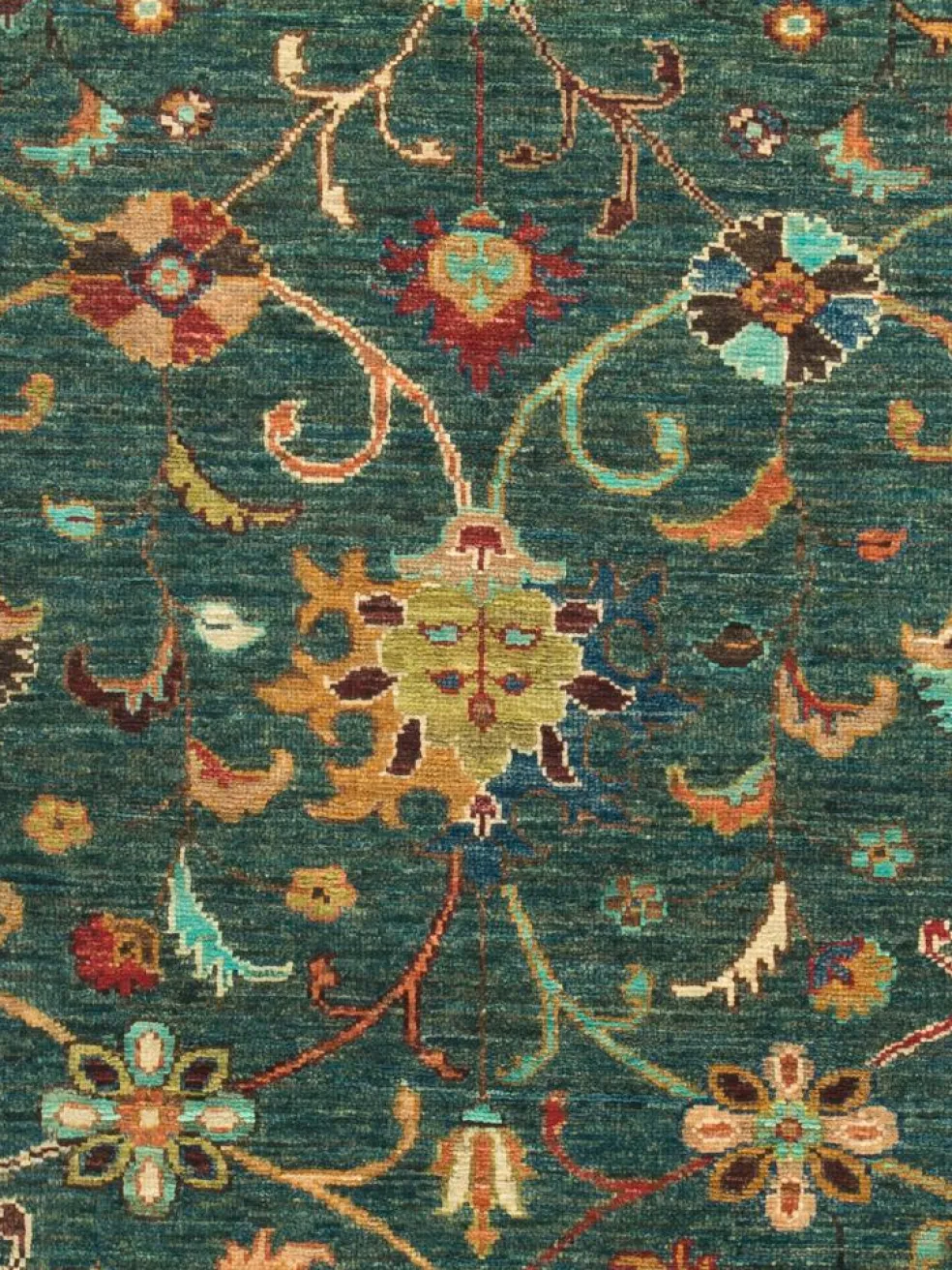 , einem klassischen Blütenmuster. Das Wort „Phool“ kommt aus der Pakistanischen Sprache Urdu und bedeutet „“Blume““. Durch den flachen und festen Flor ist der Teppich unempfindlich gegenüber den Belastungen des Alltags. – Der Teppich wurde ausGhazni
