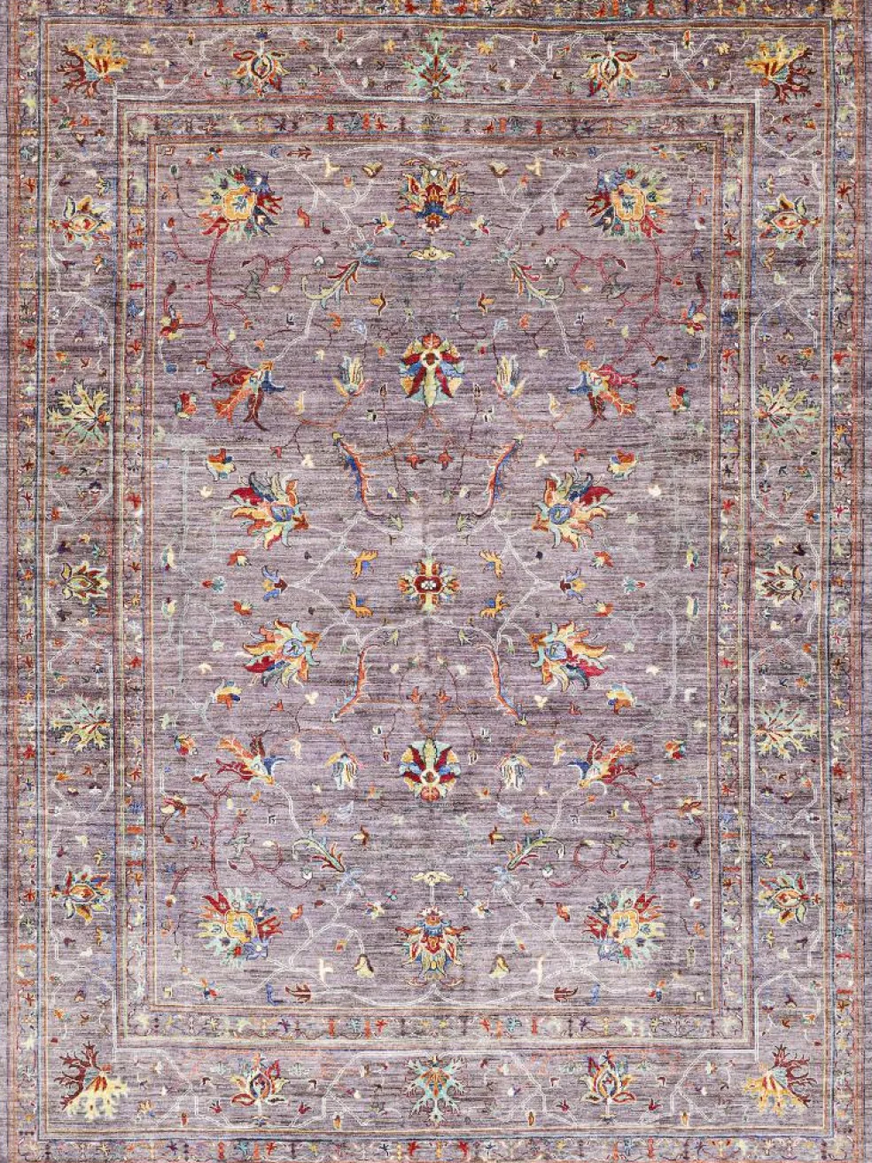 , einem klassischen Blütenmuster. Das Wort „Phool“ kommt aus der Pakistanischen Sprache Urdu und bedeutet „“Blume““. Durch den flachen und festen Flor ist der Teppich unempfindlich gegenüber den Belastungen des Alltags. – Der Teppich wurde ausGhazni