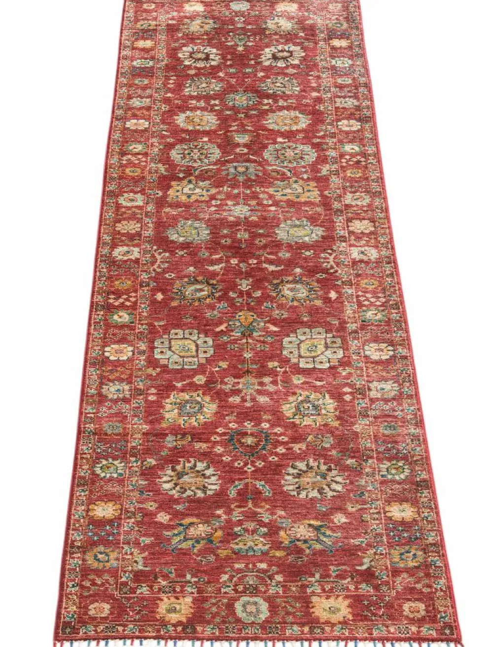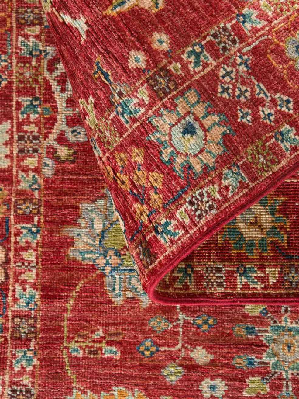 , einem klassischen Blütenmuster. Das Wort „Phool“ kommt aus der Pakistanischen Sprache Urdu und bedeutet „“Blume““. Durch den flachen und festen Flor ist der Teppich unempfindlich gegenüber den Belastungen des Alltags. – Der Teppich wurde ausGhazni