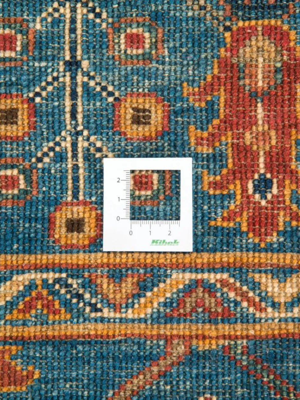 , einem klassischen Blütenmuster. Das Wort „Phool“ kommt aus der Pakistanischen Sprache Urdu und bedeutet „Blume“. Durch den flachen und festen Flor ist der Teppich unempfindlich gegenüber den Belastungen des Alltags. – Der Teppich wurde ausGhazni