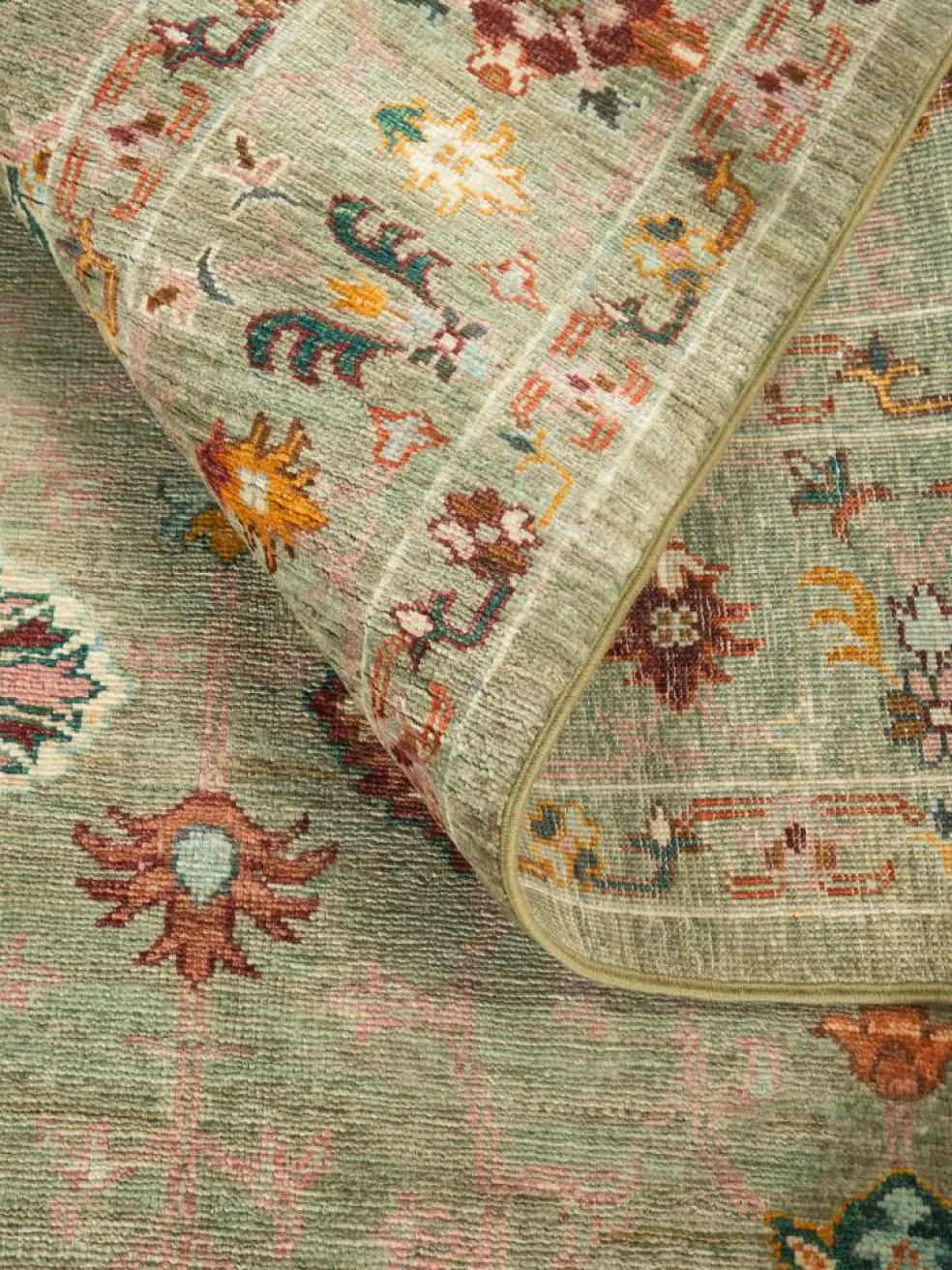 , einem klassischen Blütenmuster. Das Wort „Phool“ kommt aus der Pakistanischen Sprache Urdu und bedeutet „Blume“. Durch den flachen und festen Flor ist der Teppich unempfindlich gegenüber den Belastungen des Alltags. – Der Teppich wurde ausGhazni