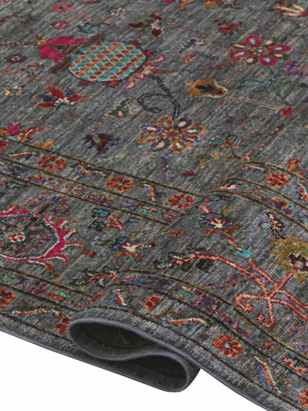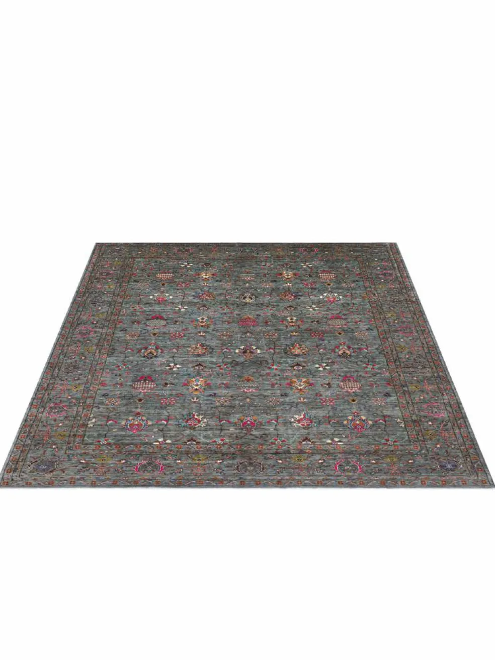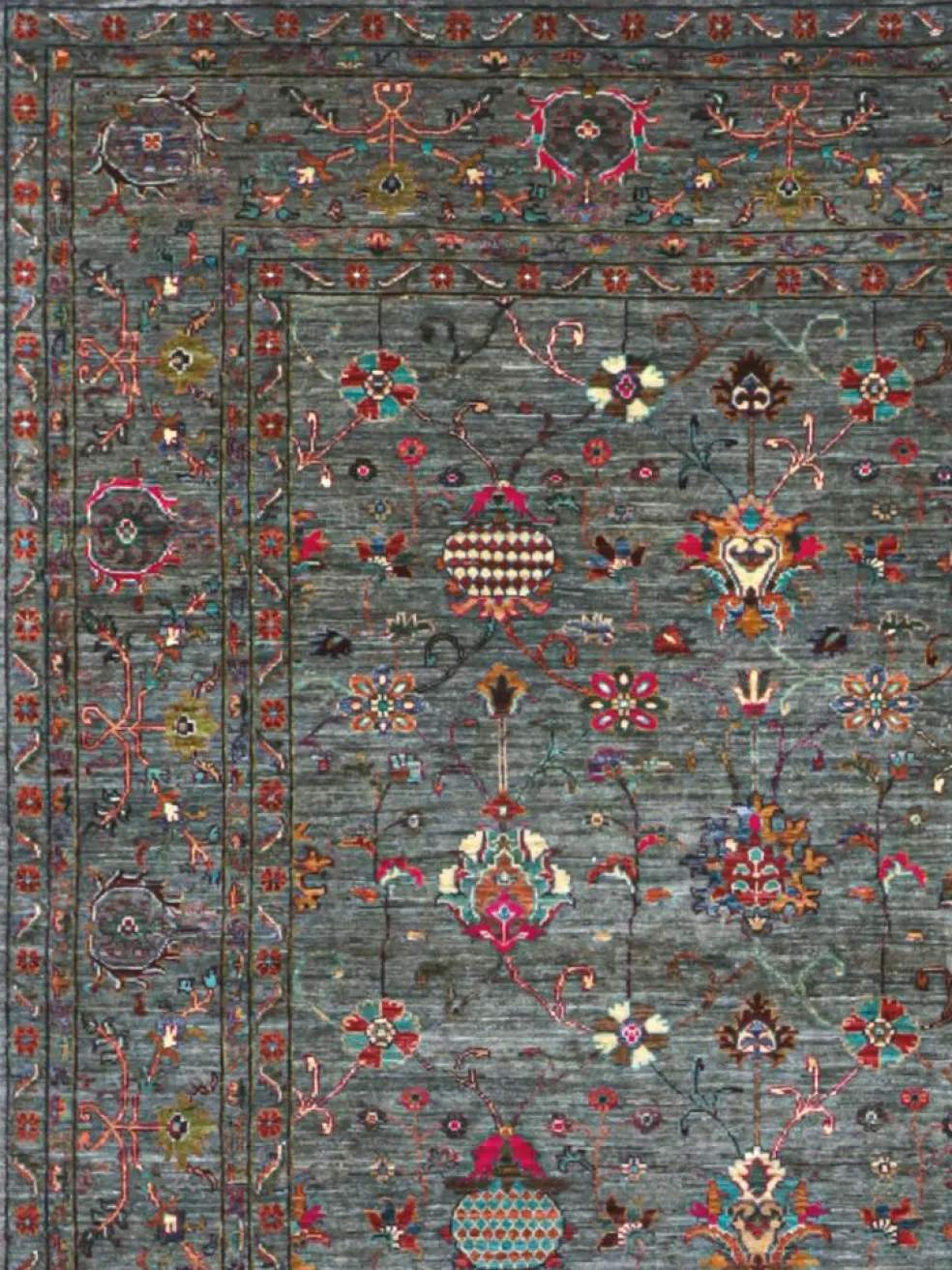 , einem klassischen Blütenmuster. Das Wort „Phool“ kommt aus der Pakistanischen Sprache Urdu und bedeutet „Blume“. Durch den flachen und festen Flor ist der Teppich unempfindlich gegenüber den Belastungen des Alltags. – Der Teppich wurde ausGhazni