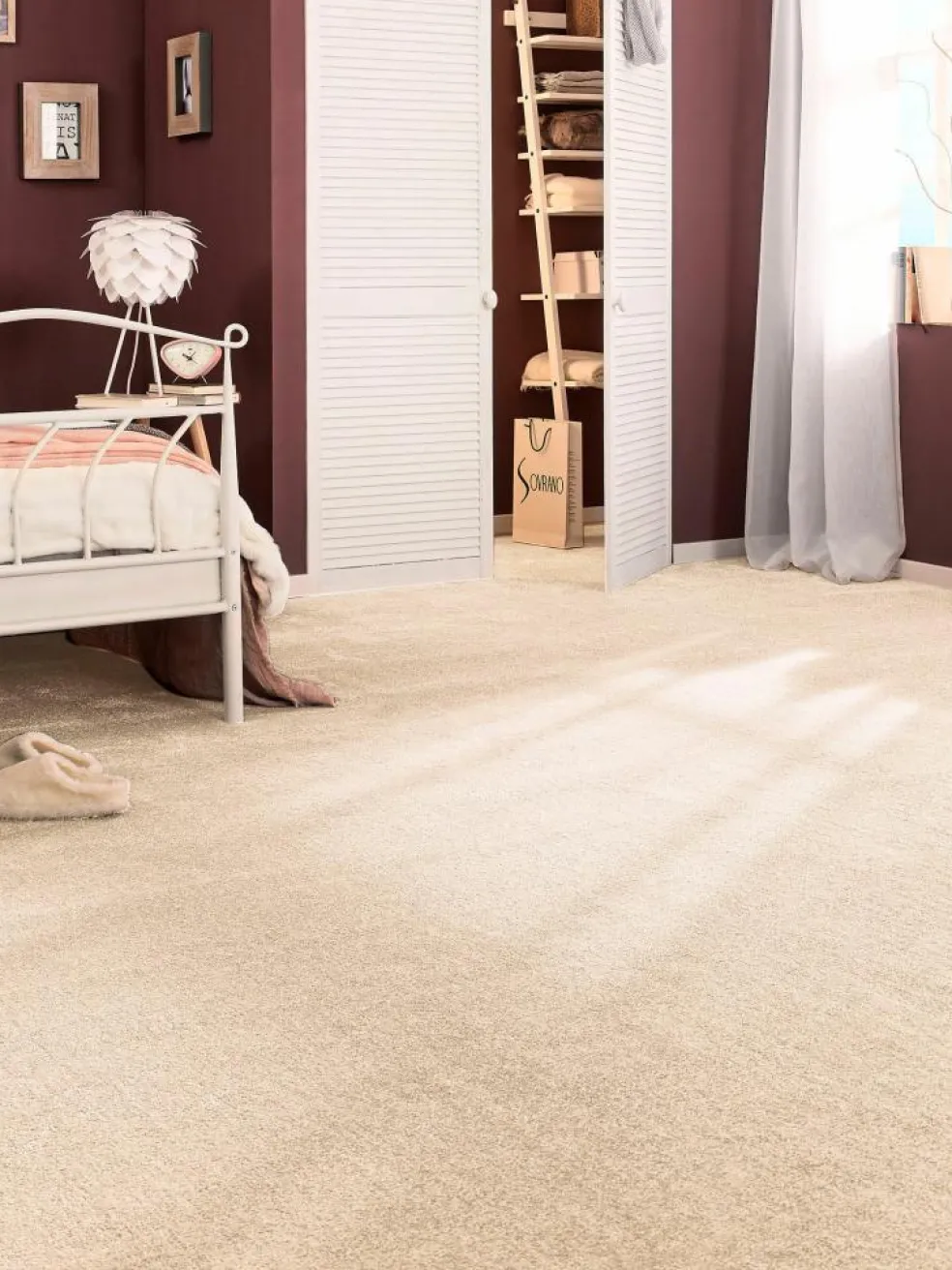 Äußerst hautsympathischer, feiner Kräuselvelours-Teppichboden. Besonders pflegeleicht, langlebig und strapazierfähig.