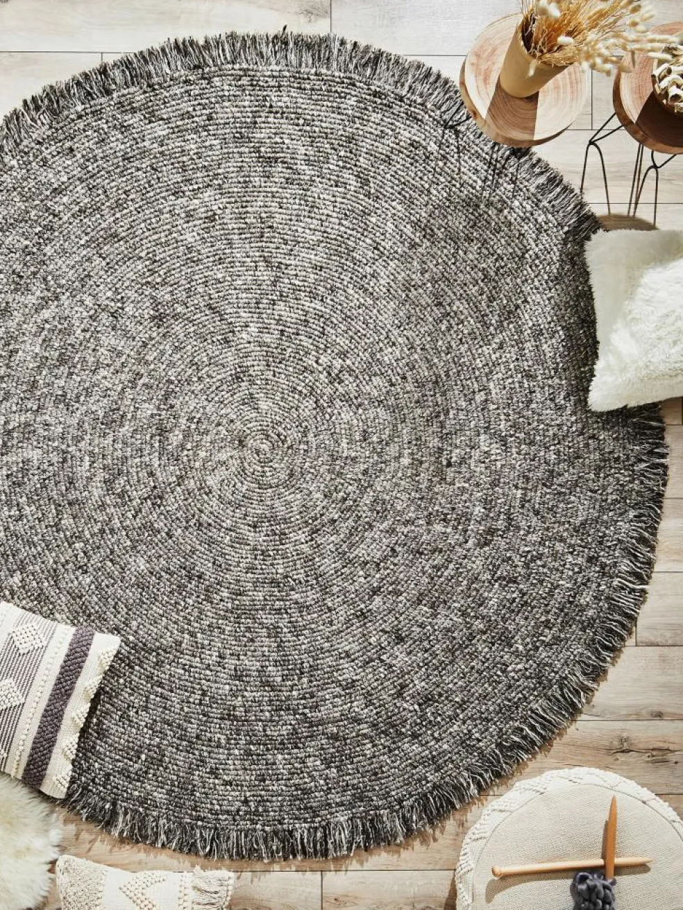 im Flor von Hand geflochten. Das Farbspiel naturbelassenerWolle