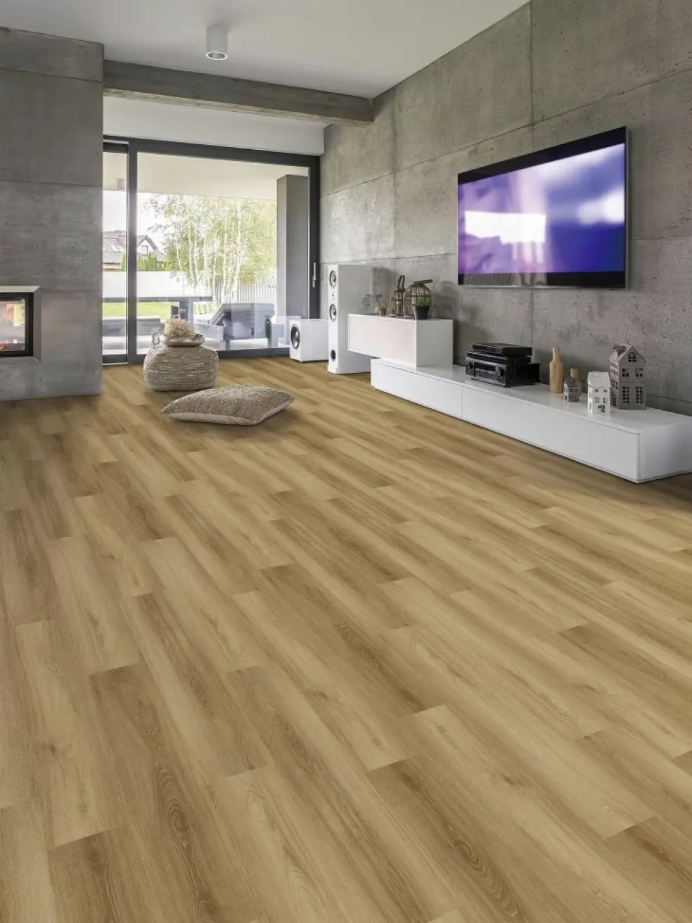 Die geprägte und rutschhemmende Oberfläche bildet perfekt die Holzstruktur ab und verleiht dem Boden die natürliche Note und ist fast nicht vom Echtholzboden zu unterscheiden. Die geringe Gesamtstärke von nur ca. 4,5 mm und der Träger aus wasserfestem Material ermöglichen ein sehr breites Einsatzspektrum dieses Bodens. Zudem ist die Oberfläche mit ihrer ca. 0,55 mm Nutzschicht besonders strapazierfähig und belastbar. Durch die innovative Klickvariante ist eine Verlegung sehr einfach. Maße ca. 1220/229/4,5 mm.