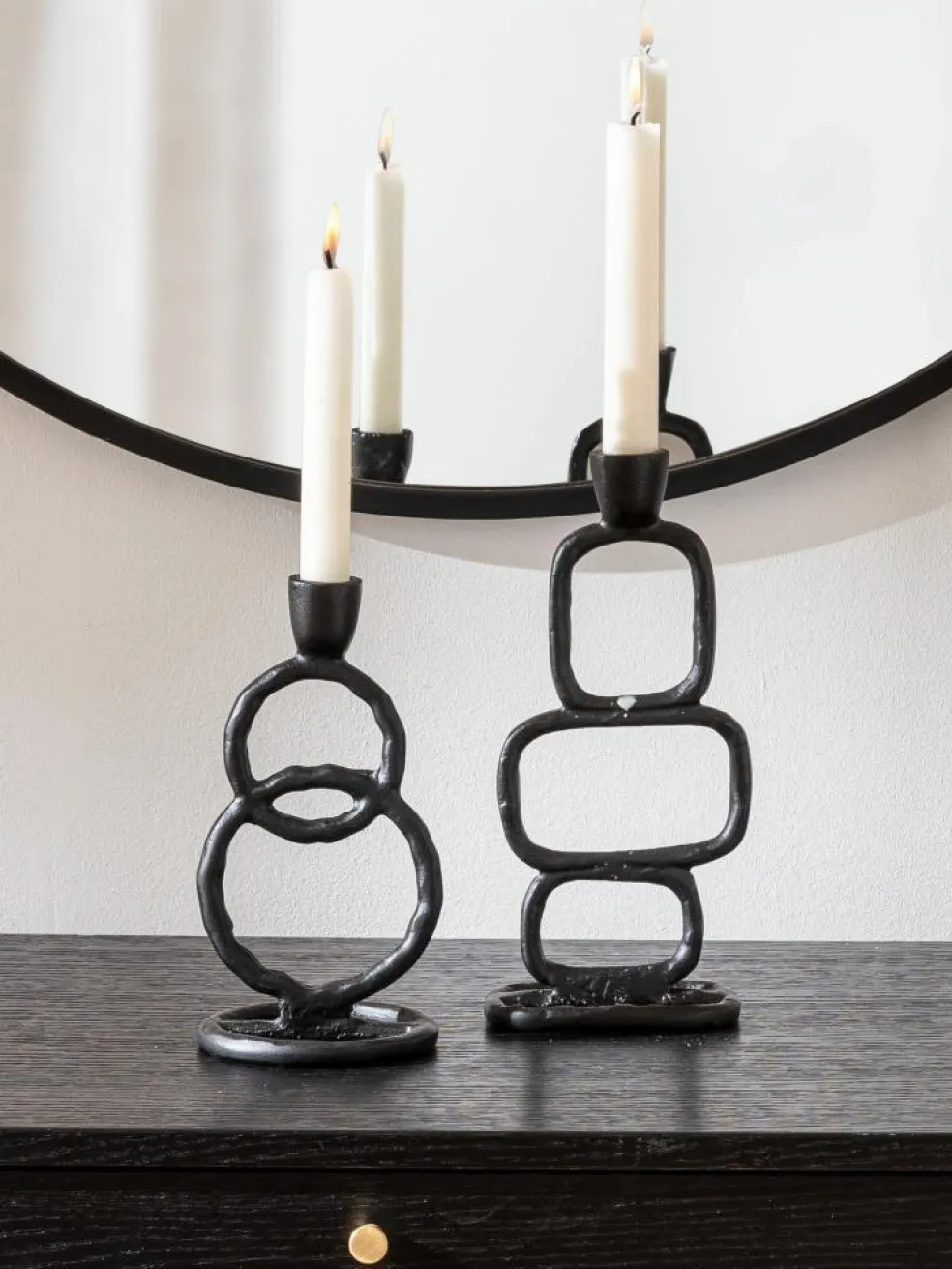 Marow wirkt, als wäre dieser Kerzenhalter handgemacht. Die verschiedenen verarbeiteten Formen haben feine gehämmerte Details. Dadurch wirkt jedes Stück beinahe einzigartig. Aus Aluminium gefertigt, pulverbeschichtet.