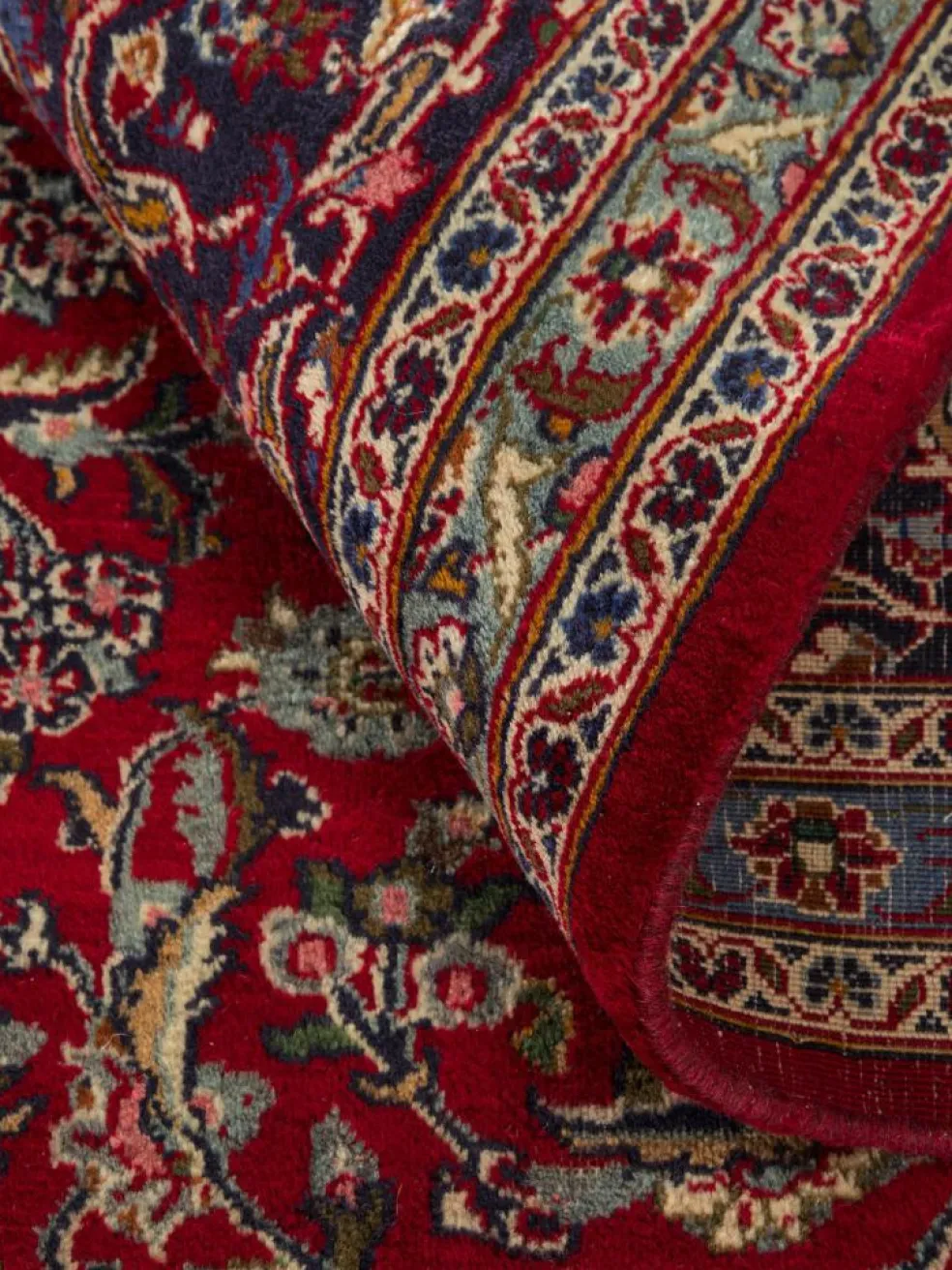 gehört zu den Hauptprovenienzen der persischen Orientteppiche.Typisch ist eine tiefrote Grundfarbe mit einer leichten Lilatönung und sehr feinen floralen Musterkompositionen mit Ranken undArabesken