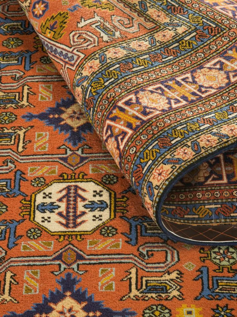 -Teppiche zeichnen sich durch den Formenreichtum sowie dem Stilisieren und Geometriesieren der traditionellen persischen Muster aus. Der Flor besteht aus guter strapazierfähigerWolle