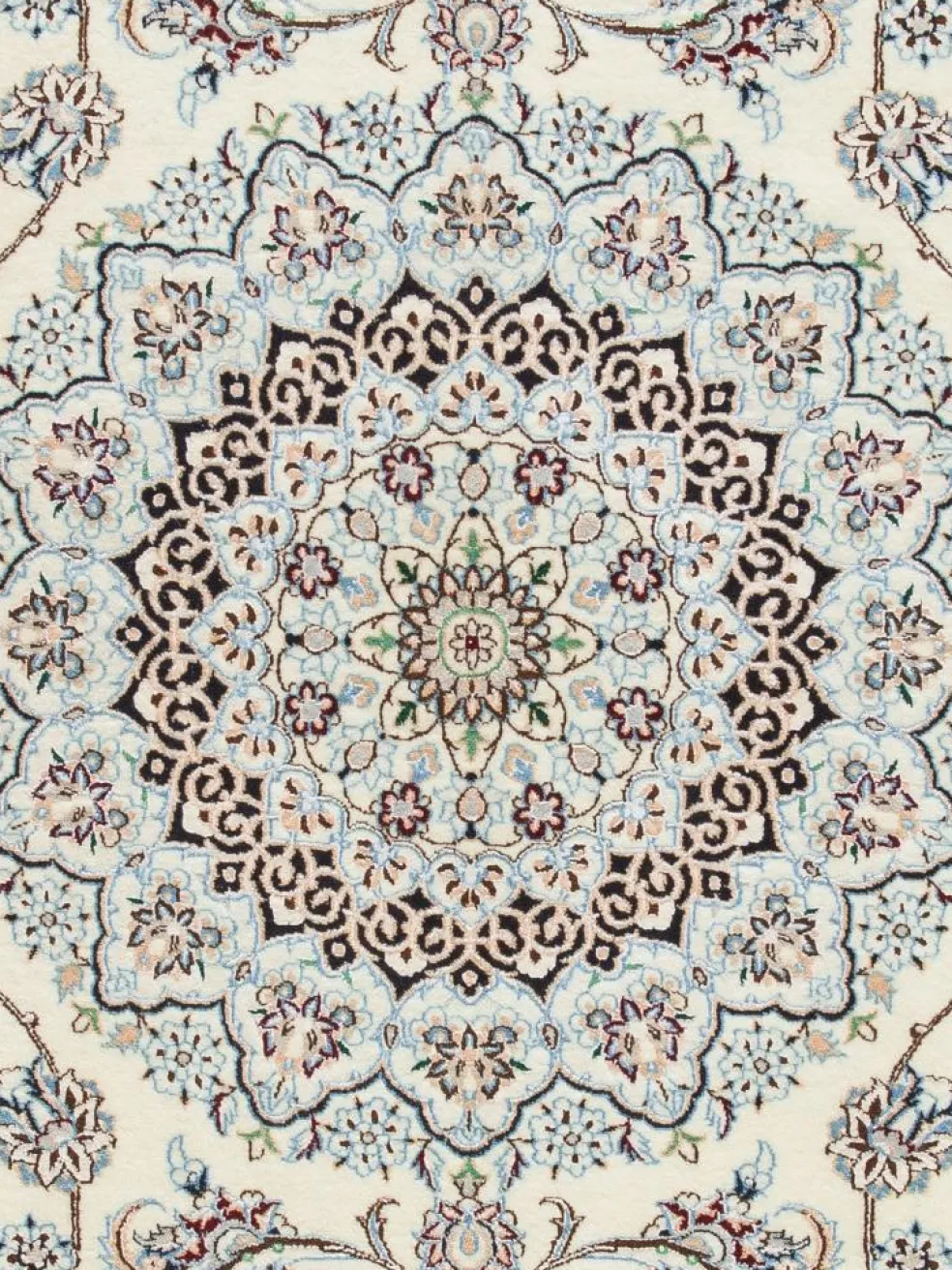 | Muster: | LexikonPalmetten Florales Musterdetail – es zeigt eine Blüte im Querschnitt ZUM LEXIKON Palmetten ,LexikonArabesken Spiralartiges Detail ornamentaler Musterführung – Arabesken sind ein typisches Muster für hochwertige persische Teppiche ZUM LEXIKON Arabesken ,LexikonMedaillon Primärornament im Mittelfeld des Teppichs ZUM LEXIKON Medaillon |