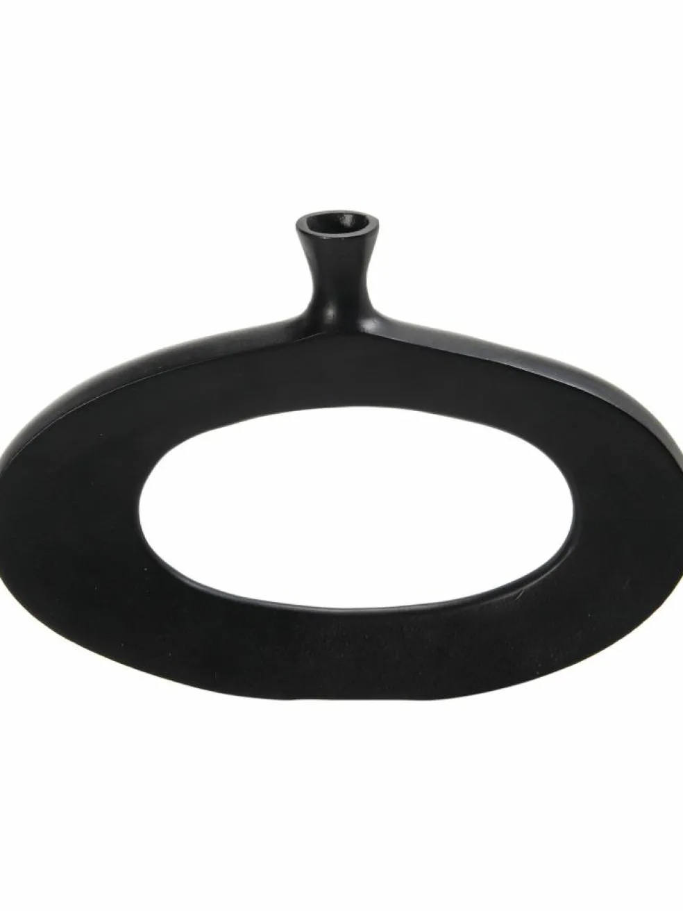 Die ausgefallene ovale Form verleiht jedem Raum einen einzigartigen Touch. Die abstrakte Form aus Aluminium wurde Massiv gegossen. In trendigem Schwarz.