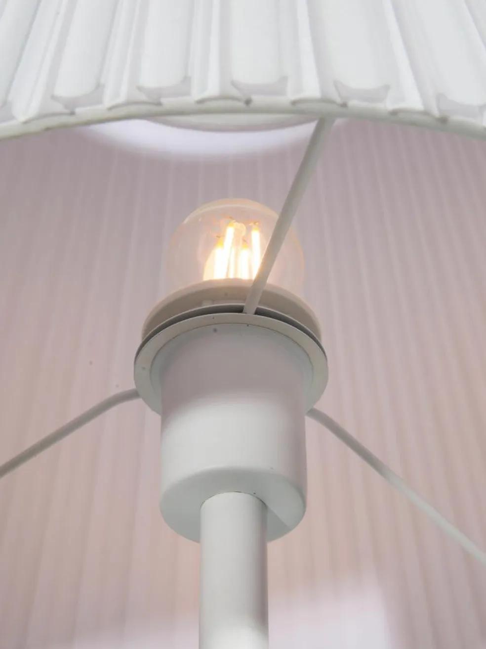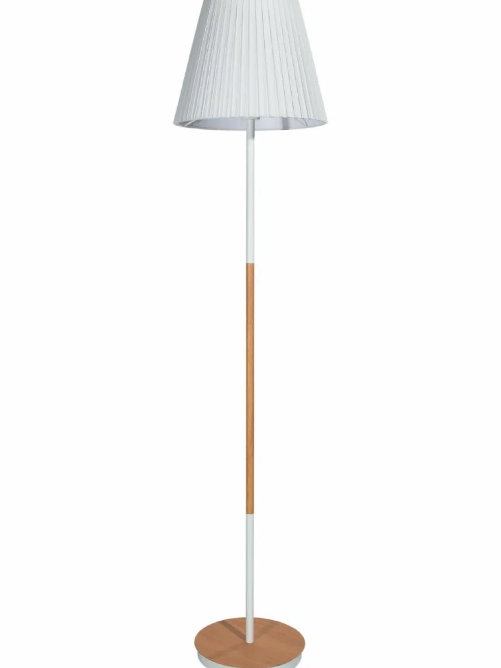 Norfis sorgt für ein natürliches Ambiente in Wohn-, Schlaf- oder Arbeitsräumen. Der Lampenfuß aus Metall wirkt durch die Holzoptik und die weißen Zierlackierungen besonders gemütlich. Der gefaltete Textil-Lampenschirm unterstützt diese Optik. Textilkabel weiß. Mit Kippschalter. Zu verwendende Leuchtmittel (nicht inklusive): E27, max. 9W LED, max. 20W CFL, max. 40W filament.