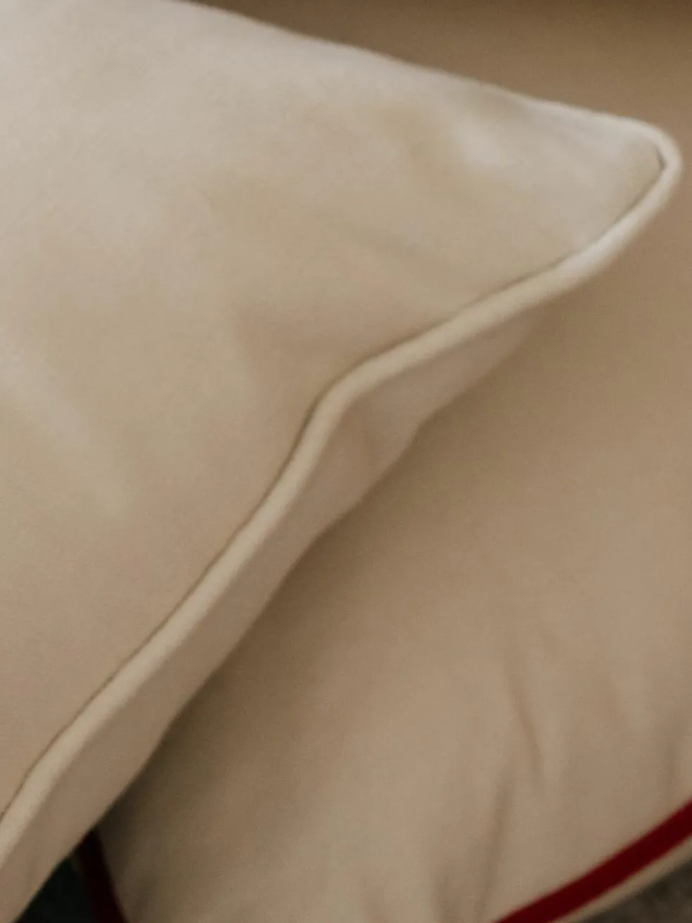 Das Kissen Nova ist ein unifarbenes Kissen aus 100 % hochwertiger Baumwolle (Kissenhülle). Die Grundfarbe ist ein zarter Cremeton, der die perfekte Basis für Kombinationsmöglichkeiten bietet. Durch die vier Farbvarianten des rundumlaufenden Kontrast-Paspels gibt es ein Nova Kissen für jeden Geschmack. Rot, Blau, Pink oder Beige – man kann seine Lieblingsfarbe wählen, oder sie alle miteinander kombinieren. Durch die cleane Optik trotz seiner spannenden Details, passt das Kissen perfekt zu anderen gemütlichen Wohnaccessoires, wie beispielsweise dem Luna Kissen, das genau wie das Nova ein Bestandteil der Kibek x Carmushka Kollektion ist. Das Nova Kissen ist bereits gefüllt und dadurch sofort einsatzbereit, außerdem kann die Hülle einfach gewaschen werden. Durch den praktischen, aber dezenten Reißverschluss, lässt sie sich leicht abziehen. Ein Produkt, an dem man lange Freude hat.