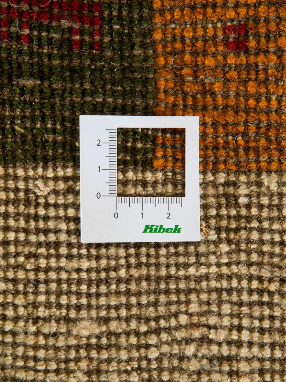 . Die Schur ist relativ hoch, der Griff fest. Die Muster sind meist schlicht oder eine Kombination mit traditionellen Mustern. Mustervorlagen gibt es nicht. Geknüpft werden alle Muster aus dem Kopf.| Gesamthöhe: | ca. 18 mm |