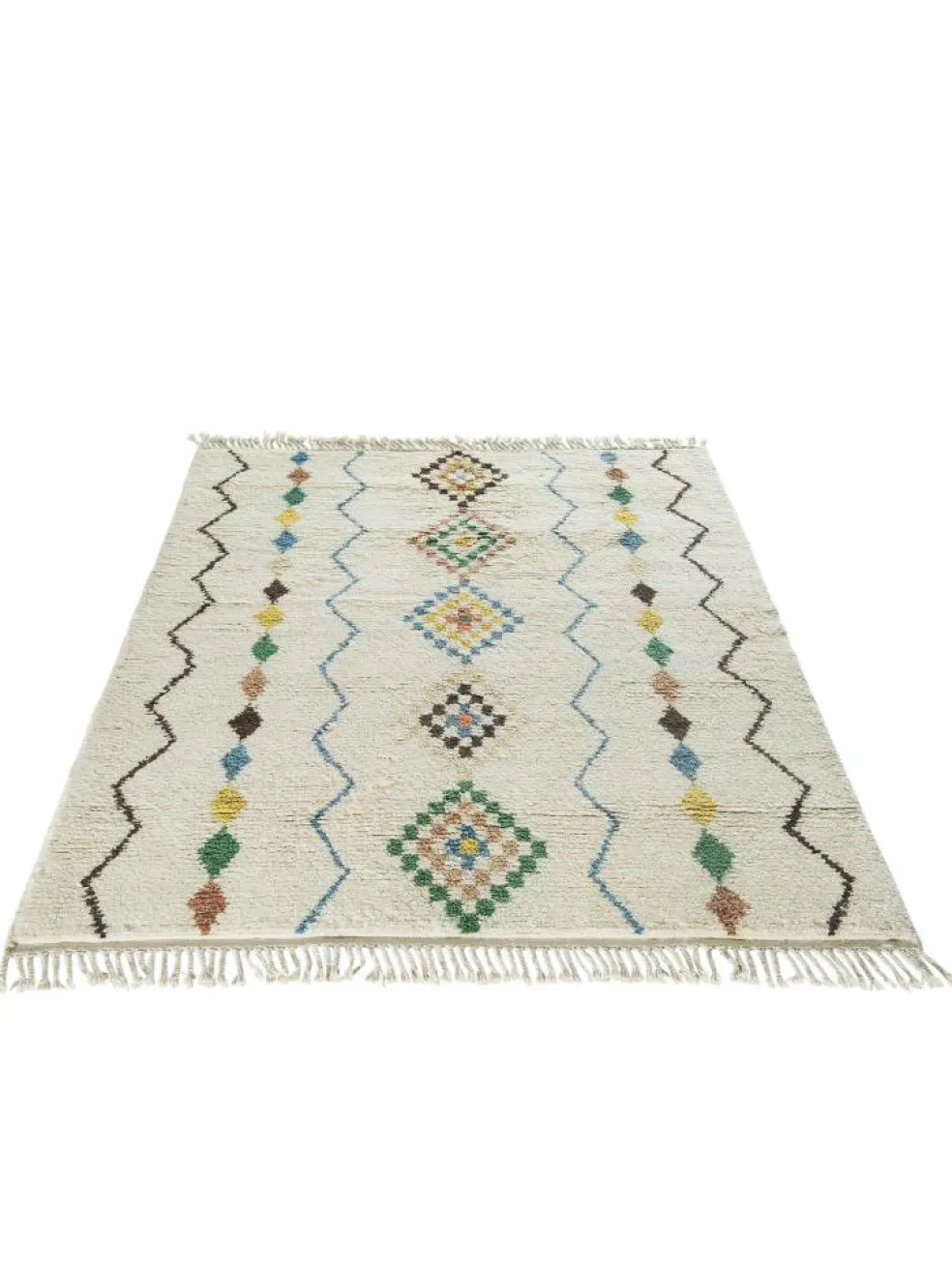 . Die Schur ist relativ hoch, der Griff fest. Die Muster sind meist schlicht oder eine Kombination mit traditionellen Mustern. Mustervorlagen gibt es nicht. Geknüpft werden alle Muster aus dem Kopf.| Gesamthöhe: | ca. 18 mm |