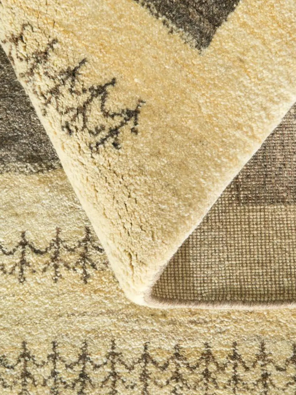 . Die Schur ist relativ hoch, der Griff fest. Die Muster sind meist schlicht oder eine Kombination mit traditionellen Mustern. Mustervorlagen gibt es nicht. Geknüpft werden alle Muster aus dem Kopf.| Gesamthöhe: | ca. 18 mm |